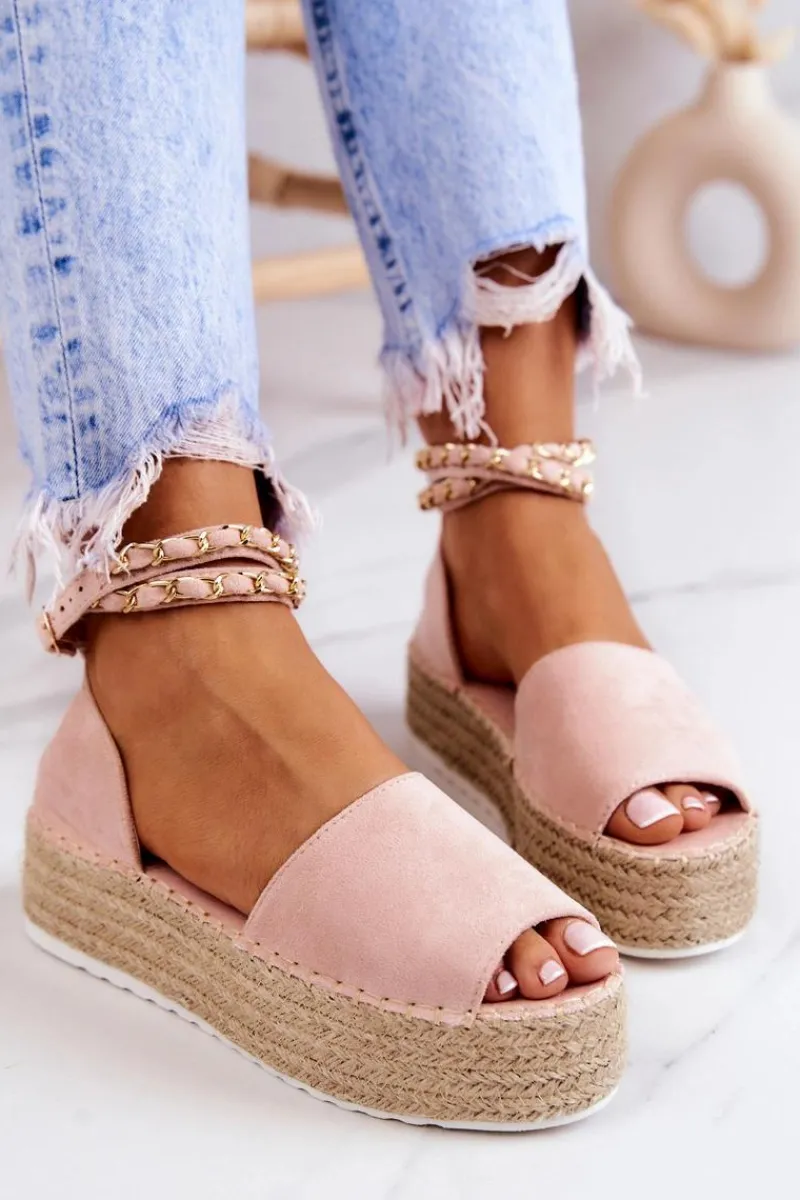 Best Boto Sandałki Espadryle Na Platformie Różowe Jeannie