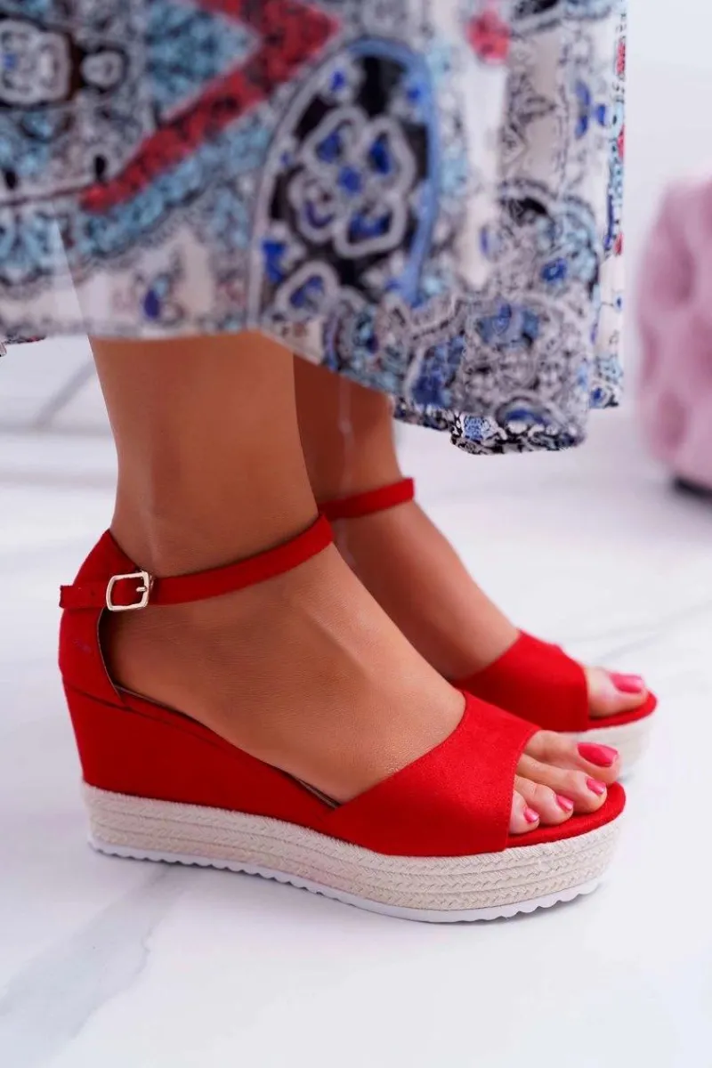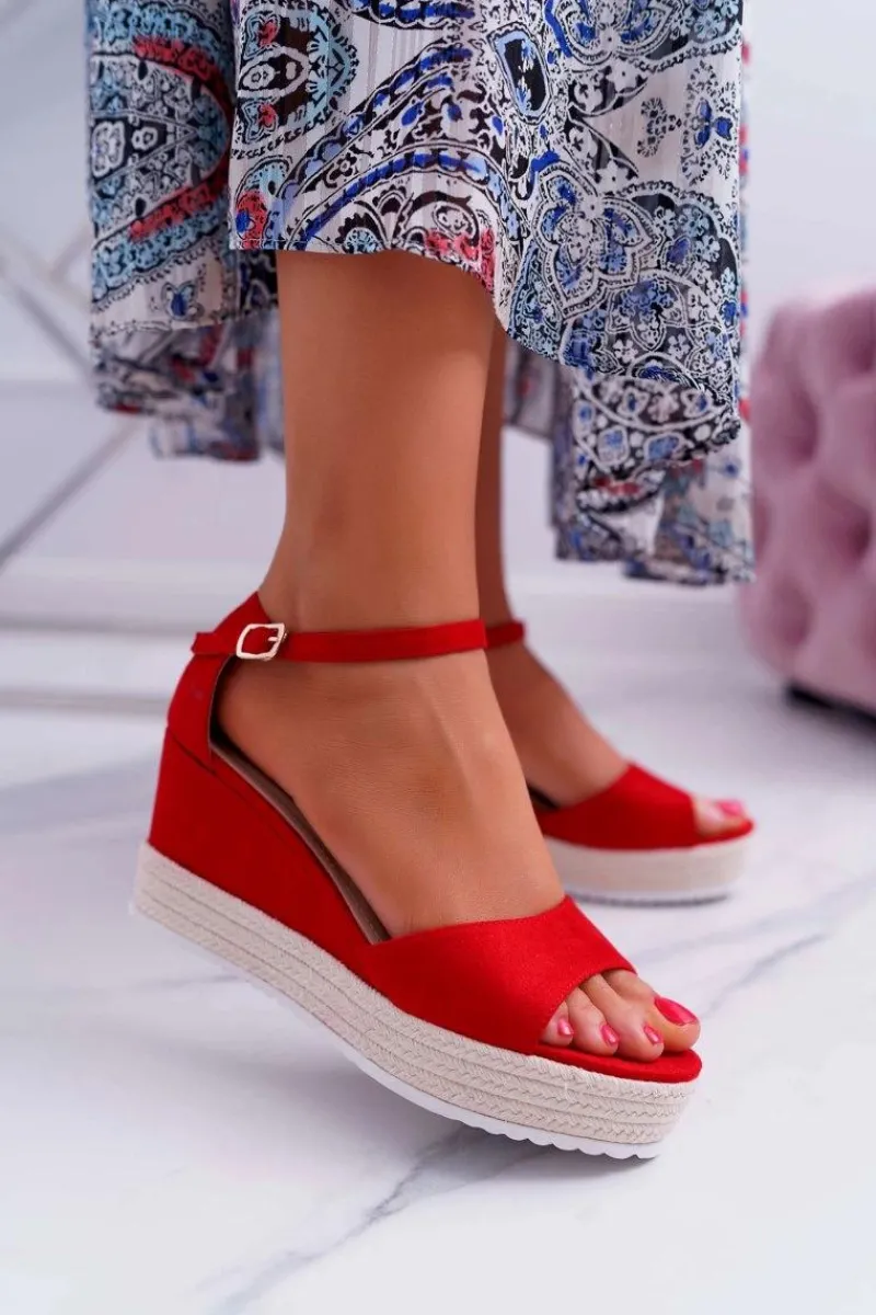 Best Boto Sandały Damskie Na Koturnie Platformie Zamszowe Czerwone Delima