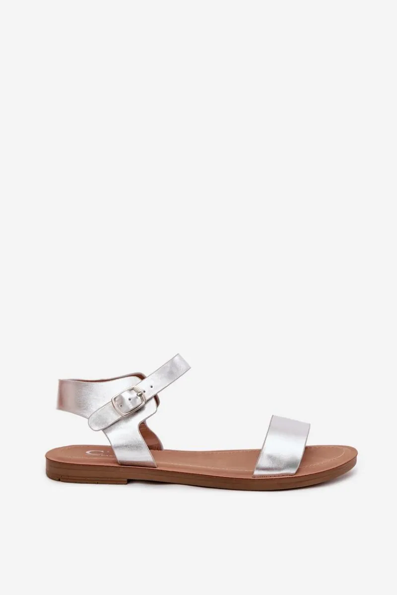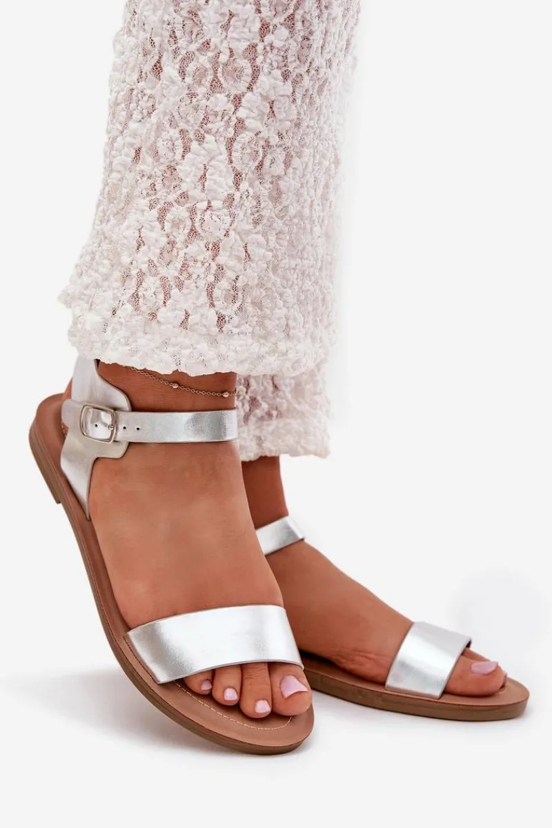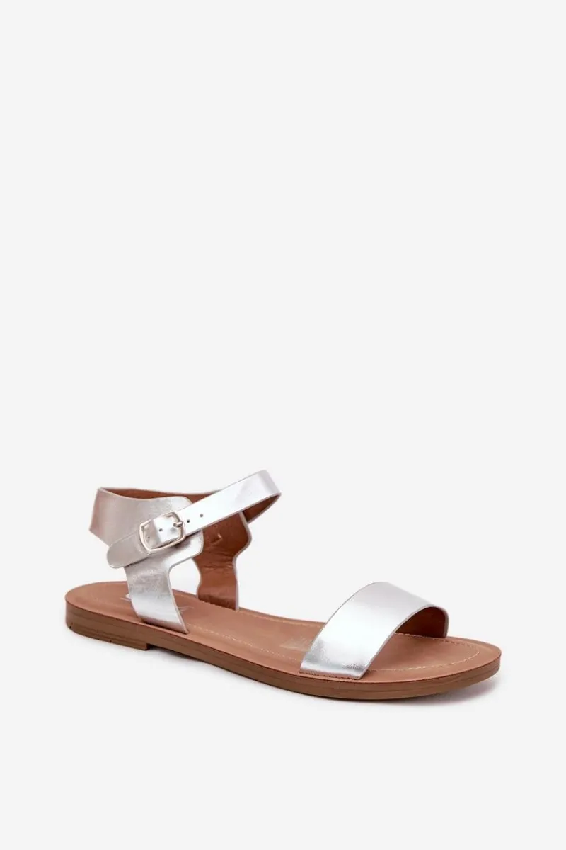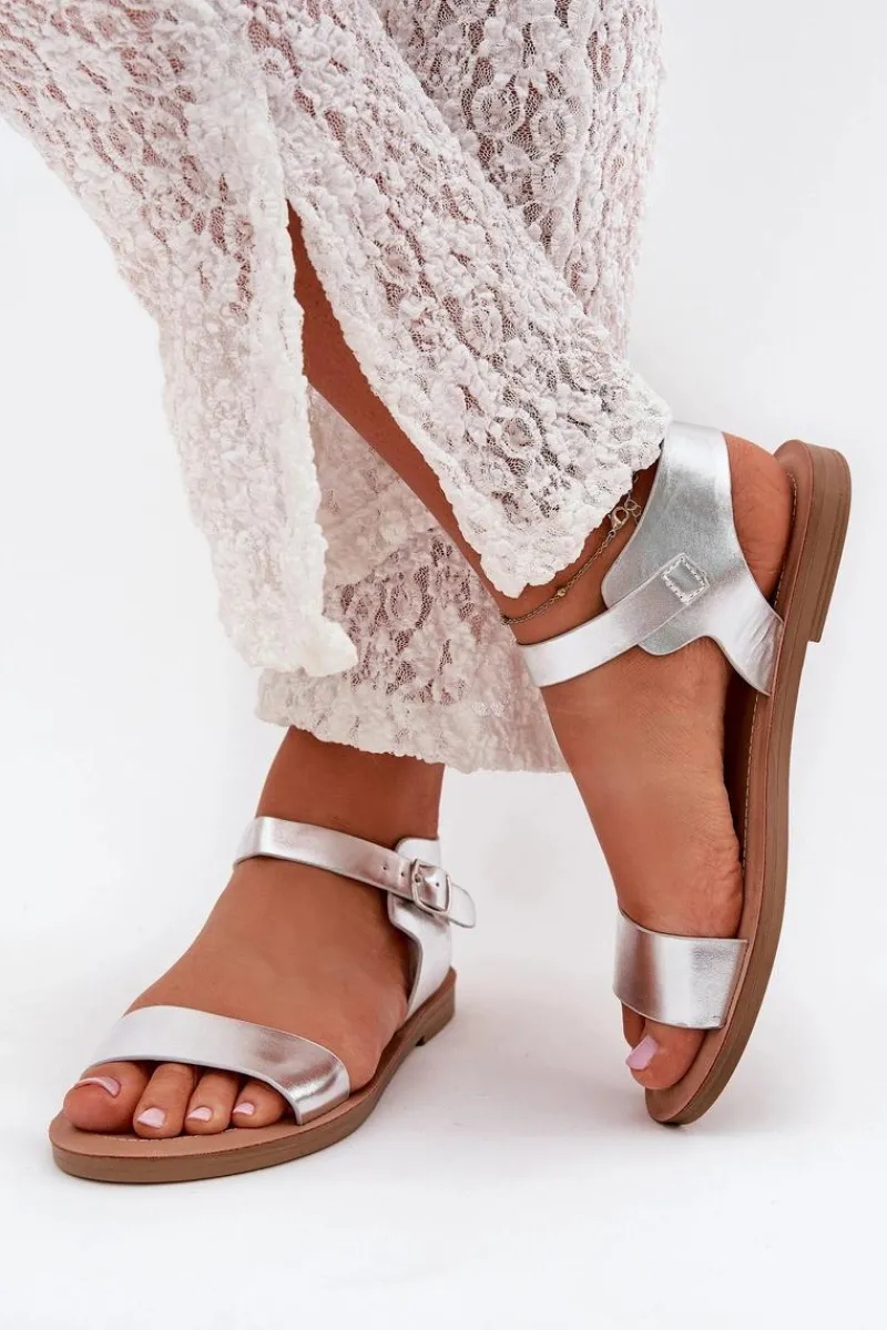 Best Boto Sandały Damskie Na Płaskim Obcasie Eko Skórzane Srebrne Kivara Srebrny