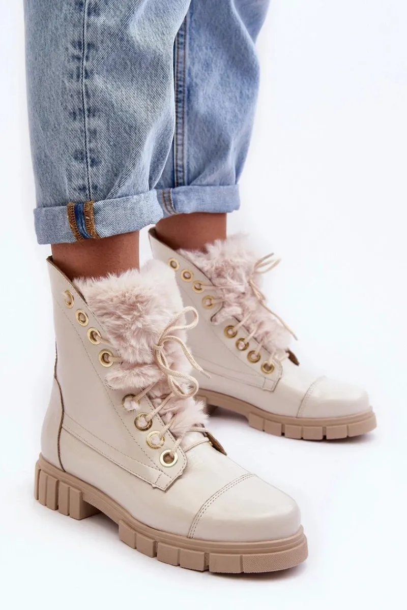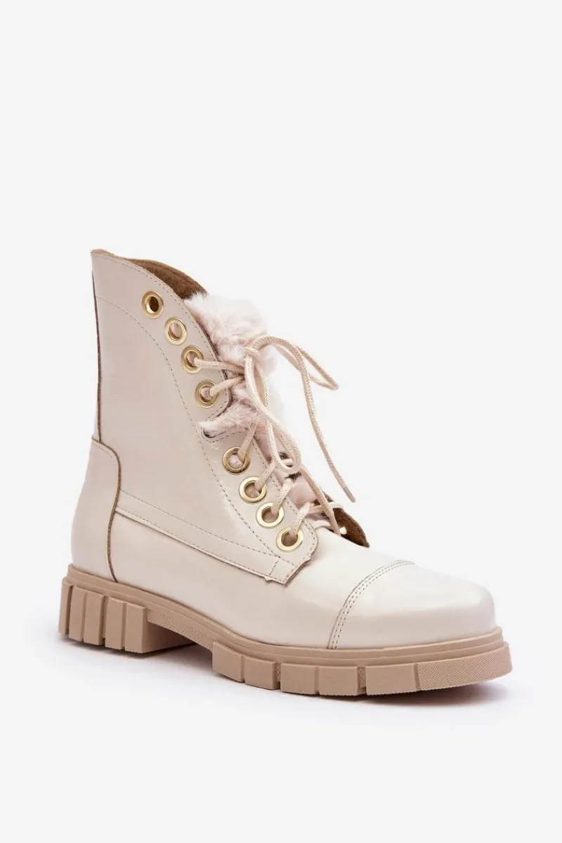 Klasyczne botki damskie zostały wykonane z wysokiej jakości naturalnych skór. Osadzone na płaskim obcasie i platformie. Model klasycznie sznurowany. Z przodu ozdobne, grube futerko. Zapiętek jest usztywniony. Skórzane botki doskonale sprawdzą się w wielu wiosennych stylizacjach. Musisz je mieć w swojej szafie! Przy wyborze rozmiaru prosimy sugerować się tabelą rozmiarów.