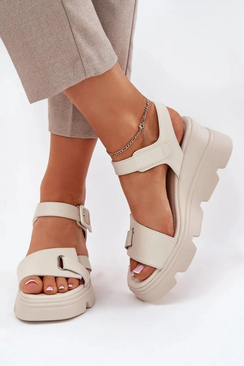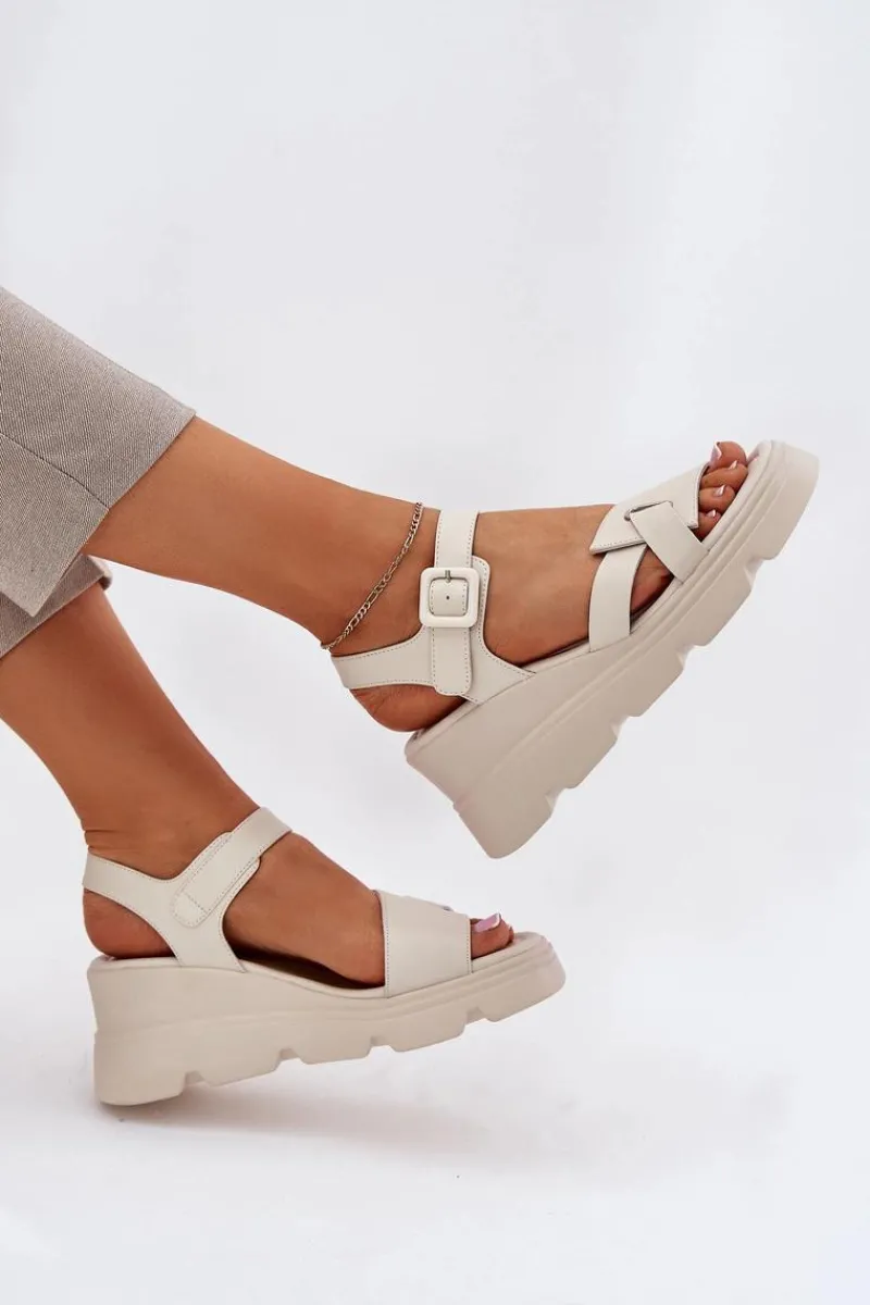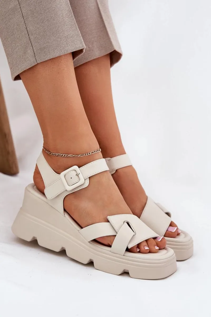 Damskie sandały z naturalnej skóry to elegancka propozycja na ciepłe dni. Osadzone na koturnie, zapewniają komfort i stabilność przez cały dzień. Zapinane na klamrę z regulowanym paskiem, pozwalają na idealne dopasowanie do stopy. Miękka wkładka gwarantuje wygodę, a klasyczny fason sprawia, że te sandały będą doskonałym uzupełnieniem wielu letnich stylizacji. Idealne zarówno do codziennych, jak i bardziej eleganckich looków. Przy wyborze rozmiaru prosimy sugerować się tabelą rozmiarów.