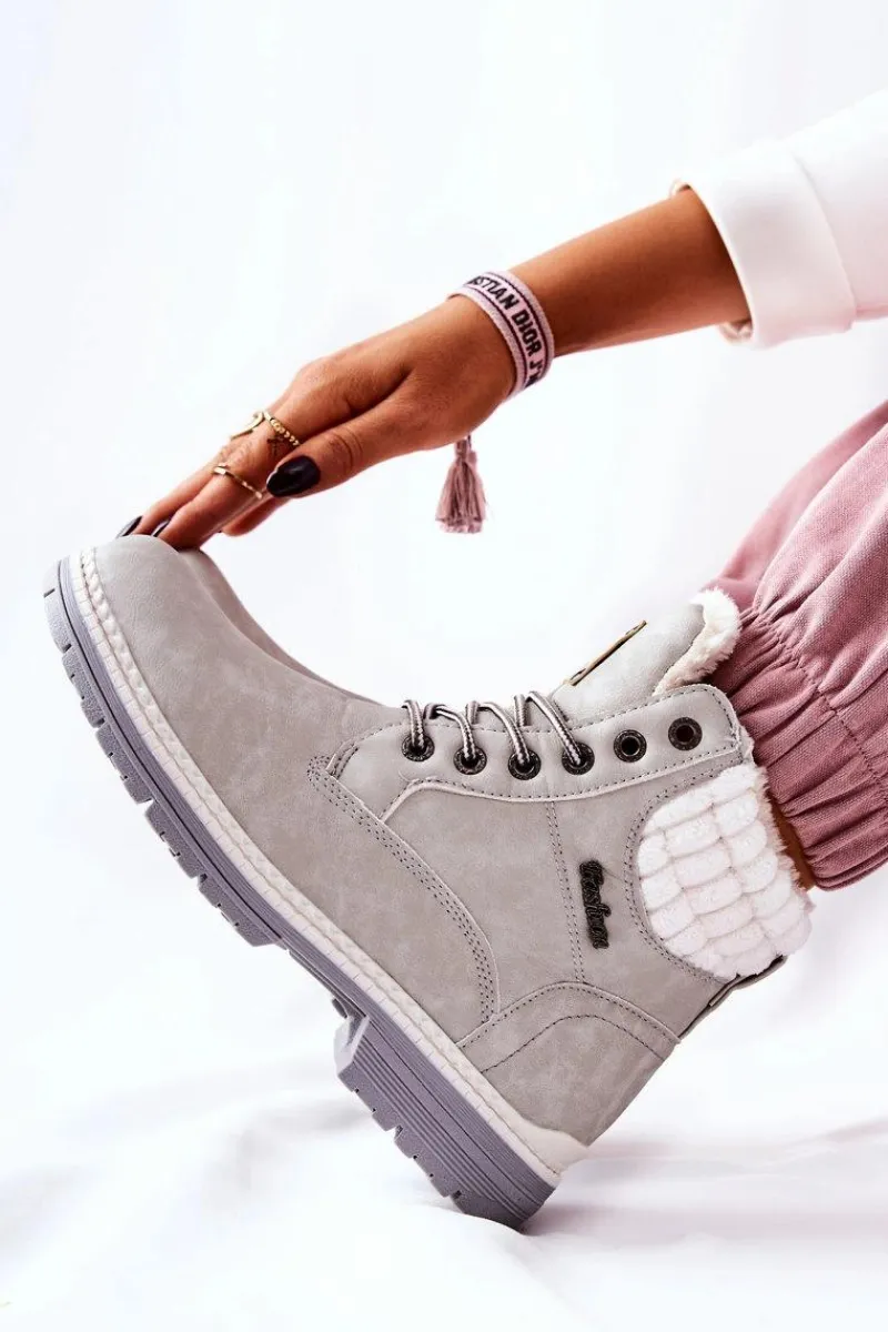 Wyjątkowe botki trapery zostały wykonane z eko skóry. Posiadają wiązanie. Z boku znajduje się ozdobny emblemat. U góry cholewki, jak i wewnątrz botki posiadają ocieplenie w postaci futerka. Świetnie sprawdzą się podczas wycieczek w jesienno-zimowe dni. Nie powinni zabraknąć ich w Twojej garderobie! Nie czekaj i kup już dziś! Przy wyborze rozmiaru prosimy sugerować się tabelą rozmiarów.