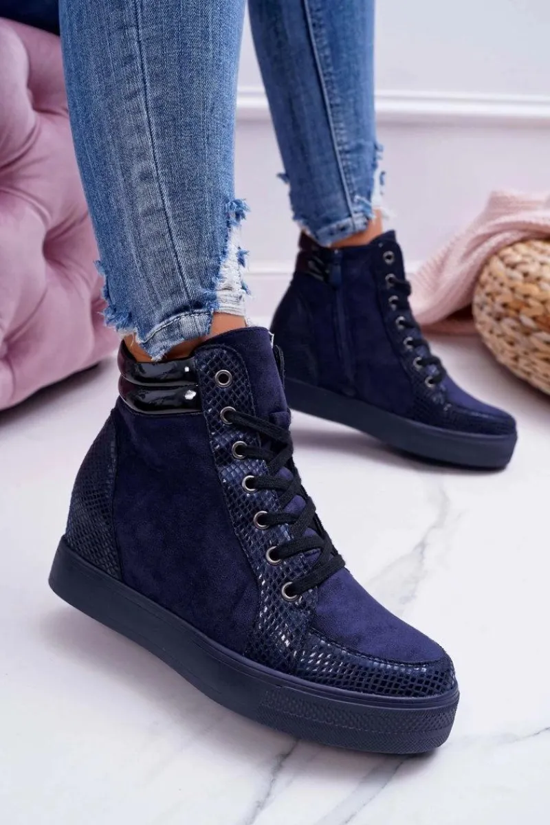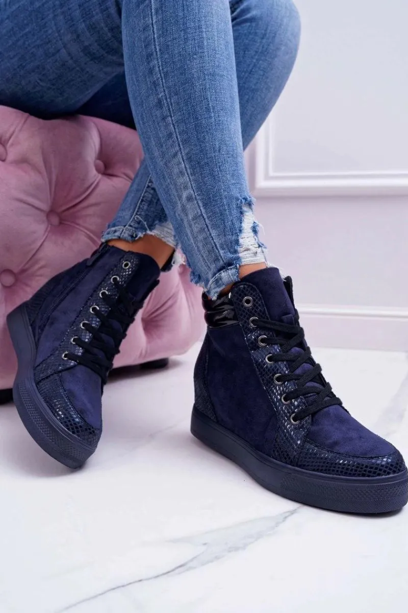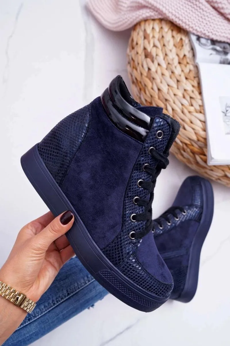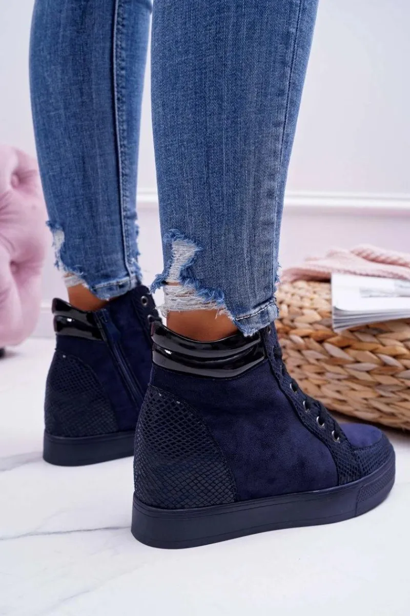 Best Boto Sneakersy Damskie Ukryty Koturn Granatowe Ferrer