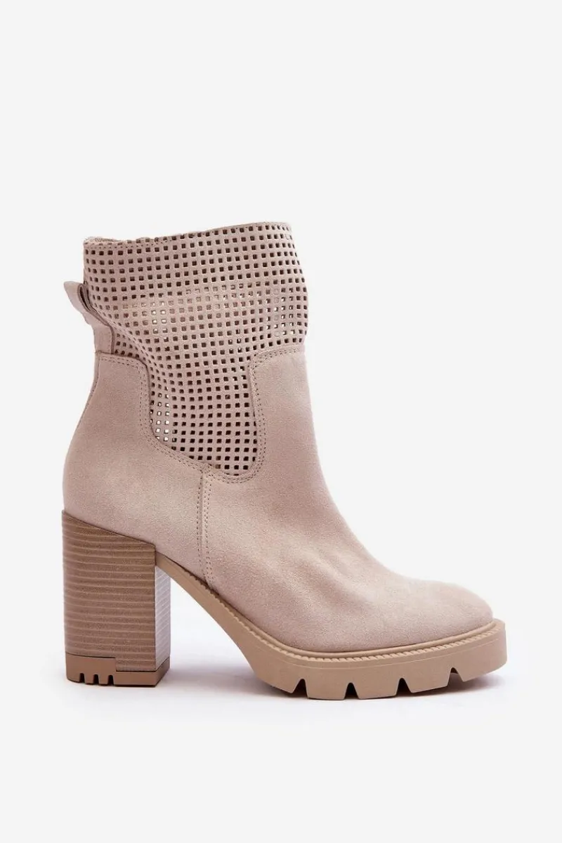 Modne, ażurowe botki na obcasie w postaci słupka zostały wykonane z wysokiej jakości skóry naturalnej. Zapinane na suwak z boku cholewki. Miękka, niezwykle wygodna wkładka została wykonana również z naturalnej skóry. Świetny model do wielu stylizacji! Przy wyborze rozmiaru prosimy sugerować się tabelą rozmiarów.