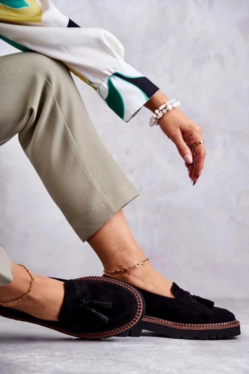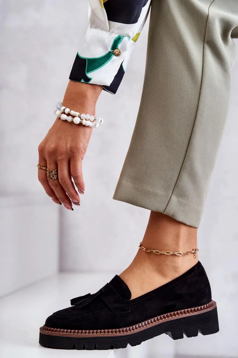Klasyczne półbuty zostały wykonane z wysokiej jakości zamszowej skóry ekologicznej. Na przodzie charakterystyczne zdobienie w postaci frędzelka. Buty te posiadają platformę oraz płaski obcas. Podeszwa ze żłobieniami świetnie odizoluje od nierównego podłoża. Świetny model do wielu stylizacji! Wygodne, a zarazem modne. Koniecznie musisz je mieć! Przy wyborze rozmiaru prosimy sugerować się tabelą rozmiarów.