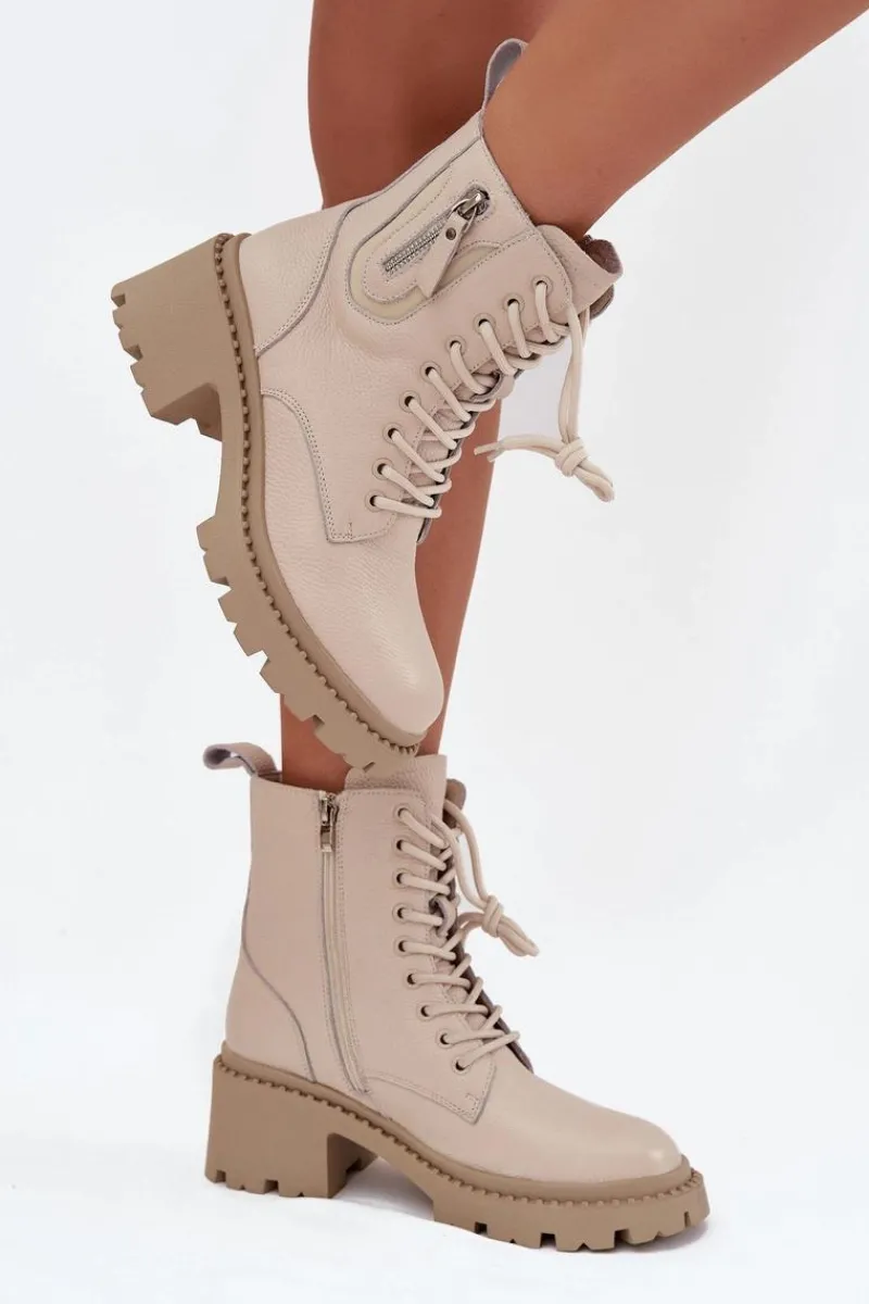 Botki damskie od marki Vinceza, wykonane z naturalnej skóry. Osadzone na masywnym obcasie typu klocek, zapewniają stabilny krok i komfort przez cały dzień. Model posiada zarówno sznurowanie, które pozwala idealnie dopasować do stopy, jak i zamek ułatwiający szybkie zakładanie. Wnętrze ocieplone kocem obuwniczym gwarantuje ciepło w chłodniejsze dni, dzięki czemu te botki świetnie sprawdzą się w codziennych, jesienno-zimowych stylizacjach. Przy wyborze rozmiaru prosimy sugerować się tabelą rozmiarów.