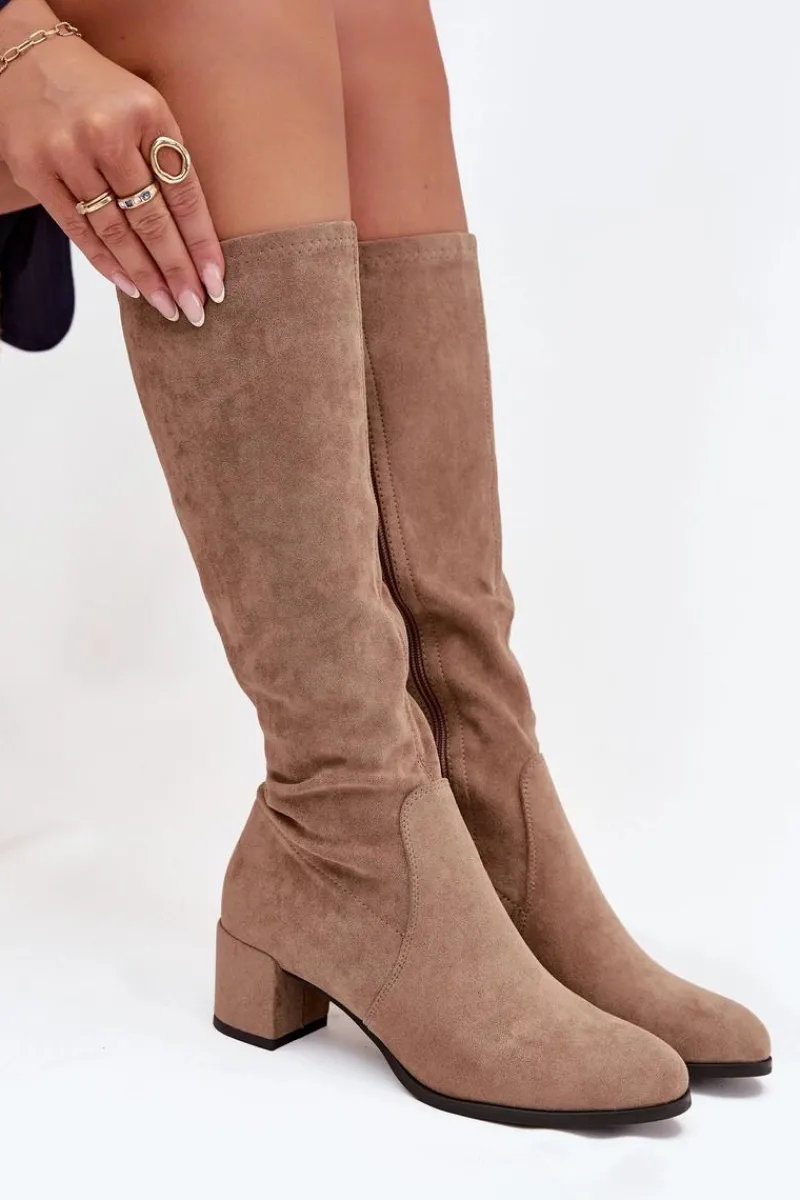 Klasyczne, damskie kozaki osadzone na niewysokim, stabilnym słupku świetnie sprawdzą się w przejściowym sezonie. Posiadają usztywnienie oraz ocieplenie w postaci delikatnego futerka na wysokości stopy. Cholewka wykonana z miłego w dotyku eko zamszu i zapinana na całej długości na zamek błyskawiczny. Miękka, ocieplana wkładka zapewni komfort podczas użytkowania. Przy wyborze rozmiaru prosimy sugerować się tabelą rozmiarów.