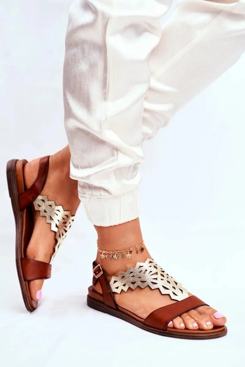Best Buty Sergio Leone Sandały Damskie Płaskie Sergio Leone Brązowe SK035