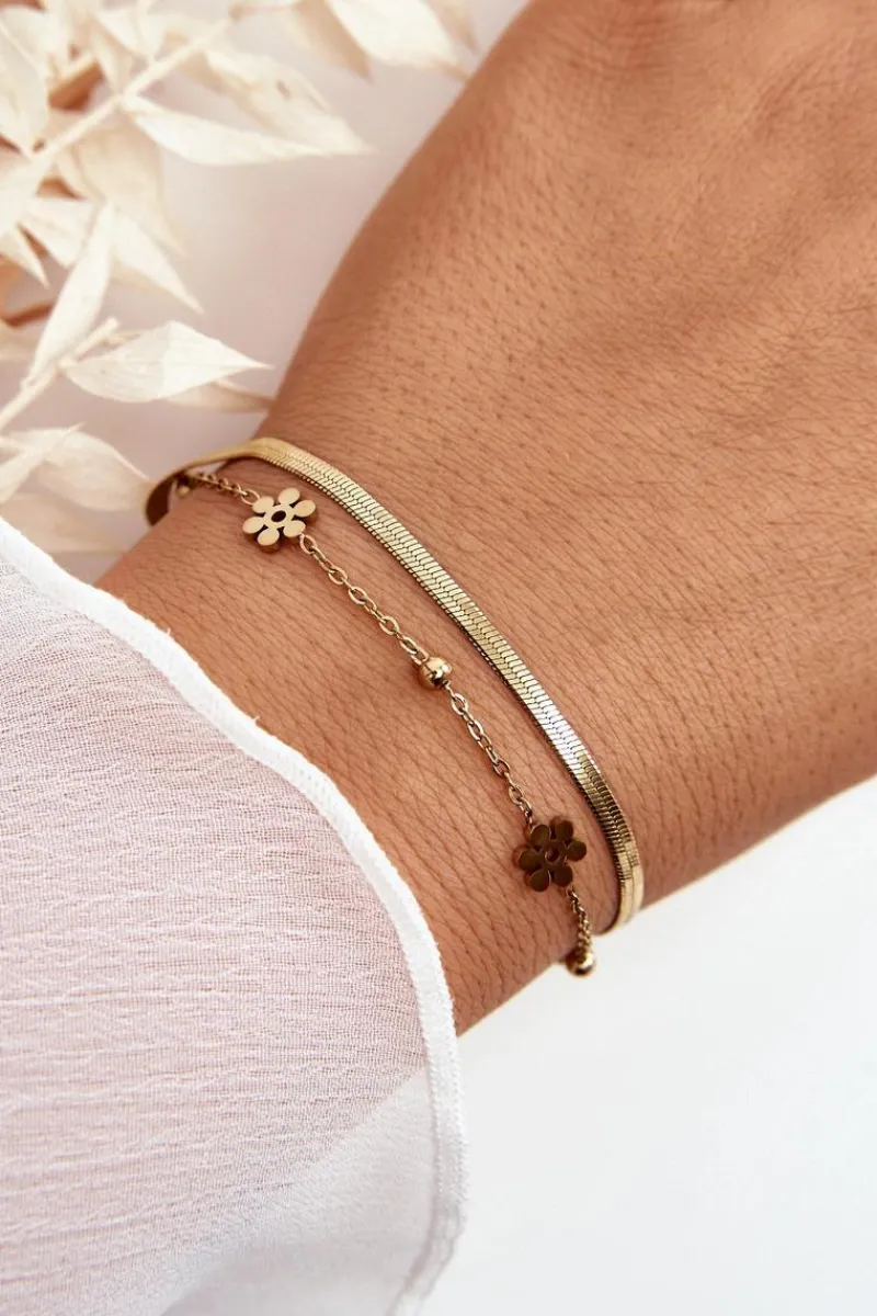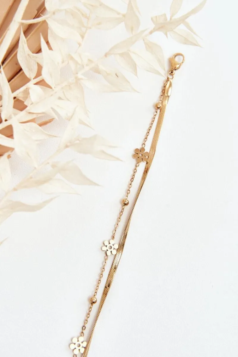 Best Damska Bransoletka Żmijka Z Kwiatami Złota Bransoletki