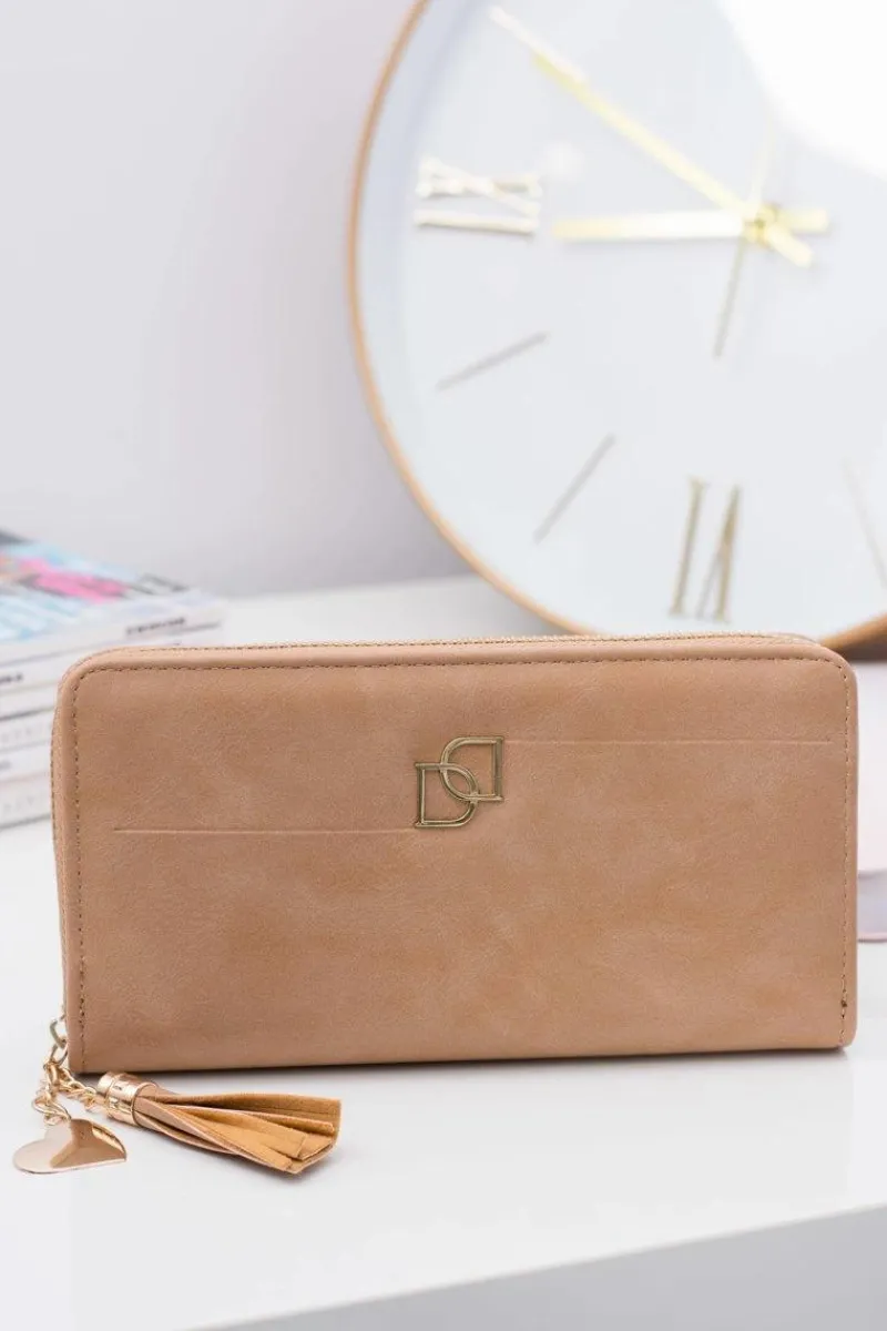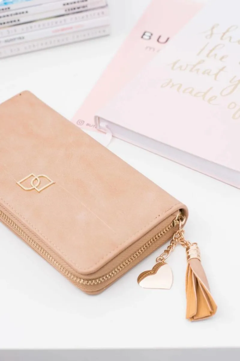 Przedstawiamy piękny portfel dla eleganckich Pań. Produkt ten charakteryzuje wyjątkowy szyk wzorowany na trendach mody. Portfele wykonane przy użyciu tylko najwyższej klasy materiałów. Staranne i piękne wykończenie portfela oddaje niesamowitą dbałość o detale oraz modowy gust. Wewnątrz znajdziemy 3 przegródki, które zapinane są na zamek przyozdobiony brelokiem ze złotym sercem oraz frędzelkami. Jedna z kieszonek zapinana jest na zameczek, która świetni sprawdzi się do przechowywania bilonu, dodatkowo po bokach znajduje się 8 przegródek na karty i dwie na większe dokumenty. Dostępne w kilku kolorach. Nie czekaj i spraw sobie ten wspaniały portfel!