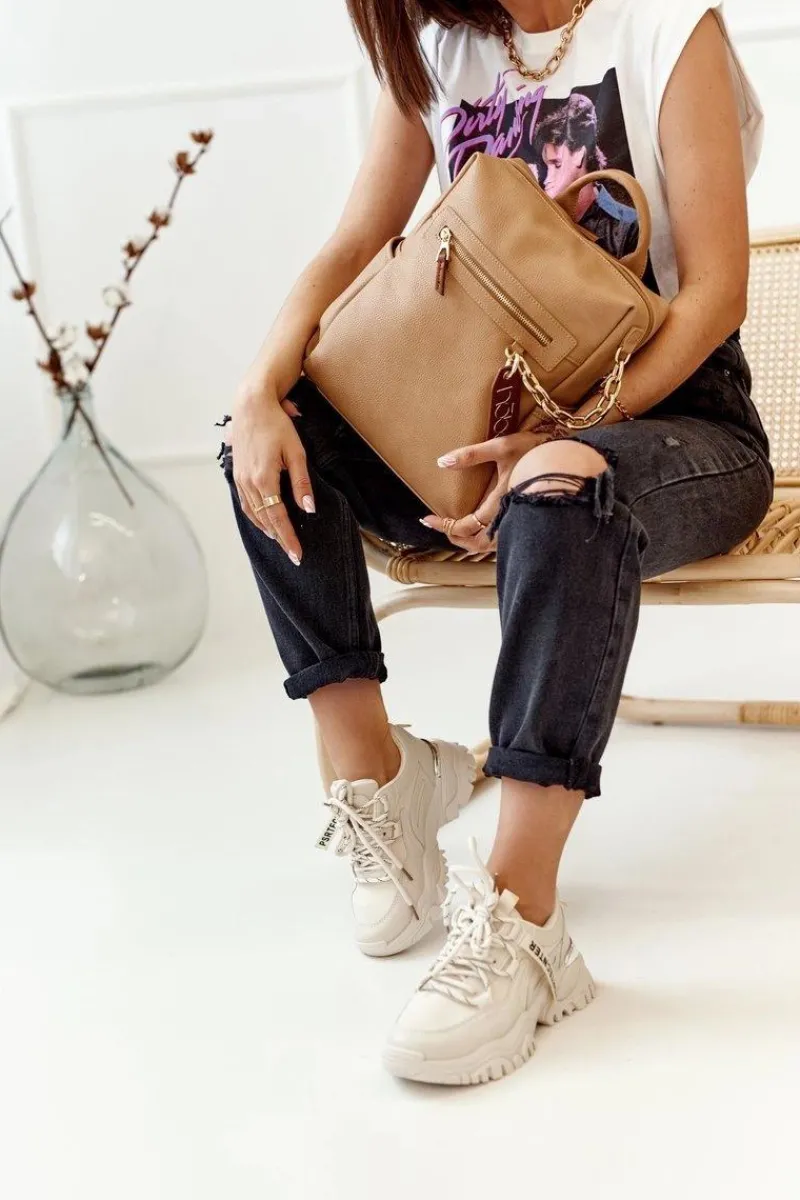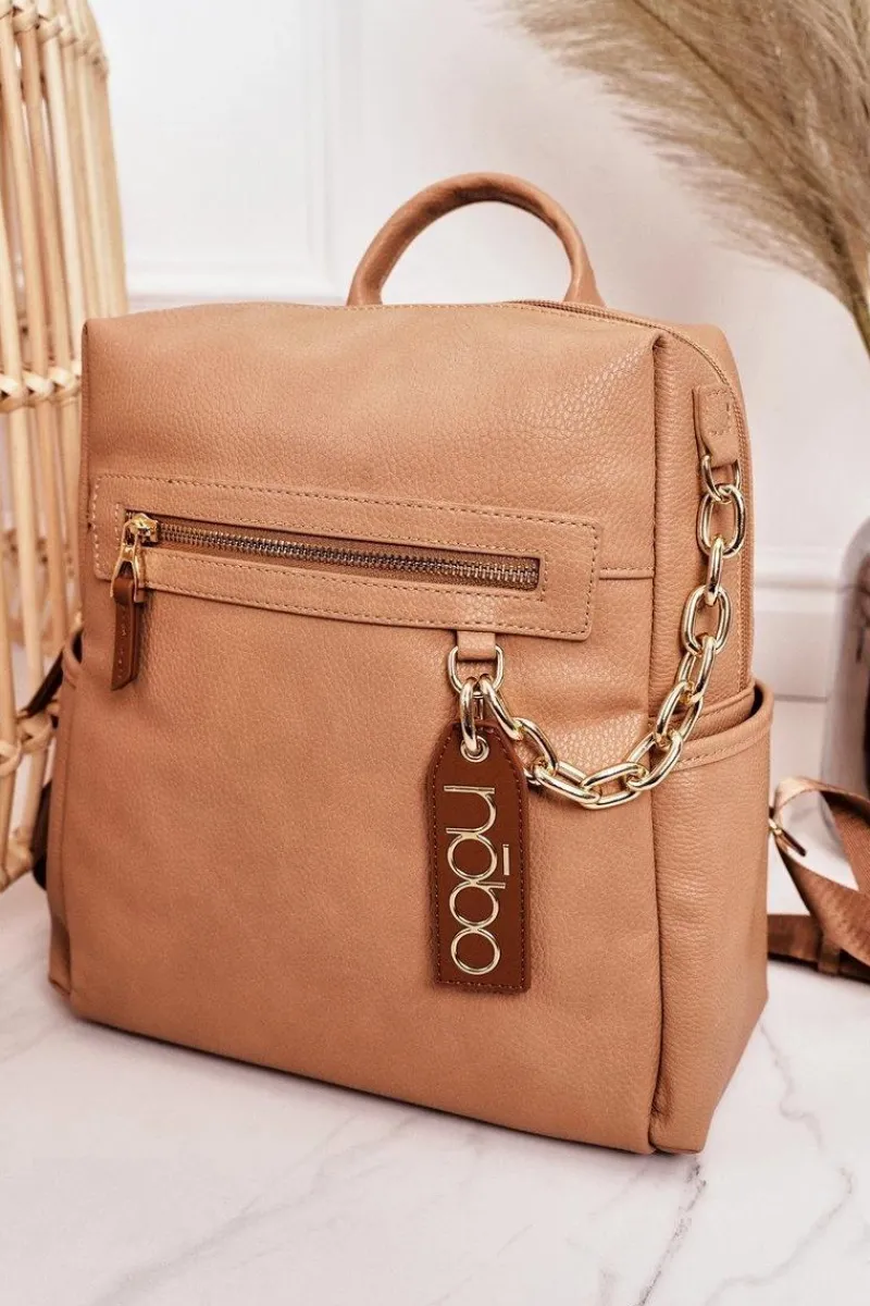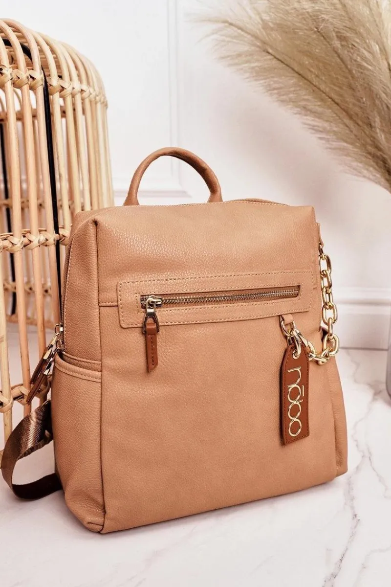 NOBO to marka, która wyróżnia się niebanalnym stylem oraz wysoką jakością wykonania produktów. Wyjątkowy plecak posiada jedną komorę, trzy wewnętrzne kieszenie na telefon i drobiazgi, oraz trzy kieszenie zewnętrzne. Plecak wykonany jest miękkiej z eko skóry, posiada dekoracyjny łańcuch i brelok.