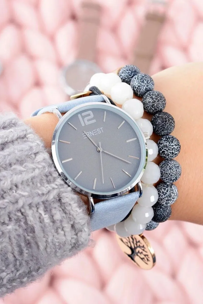 Damski zegarek Claire marki Ernest! Najnowszy model z piękną, szykowną kopertą oraz regulowanym paskiem, to idealny wybór dla eleganckich kobiet! Pasuje zarówno do codziennych stylizacji jak i tych bardziej eleganckich. Duża czytelna tarcza w kolorze paska. Nie czekaj dłużej, spraw sobie trochę elegancji w najwyższej jakości.