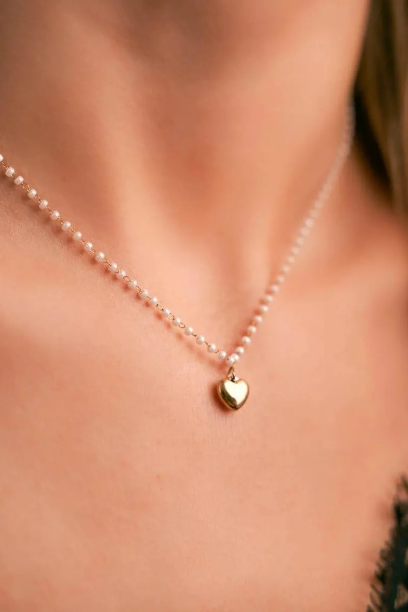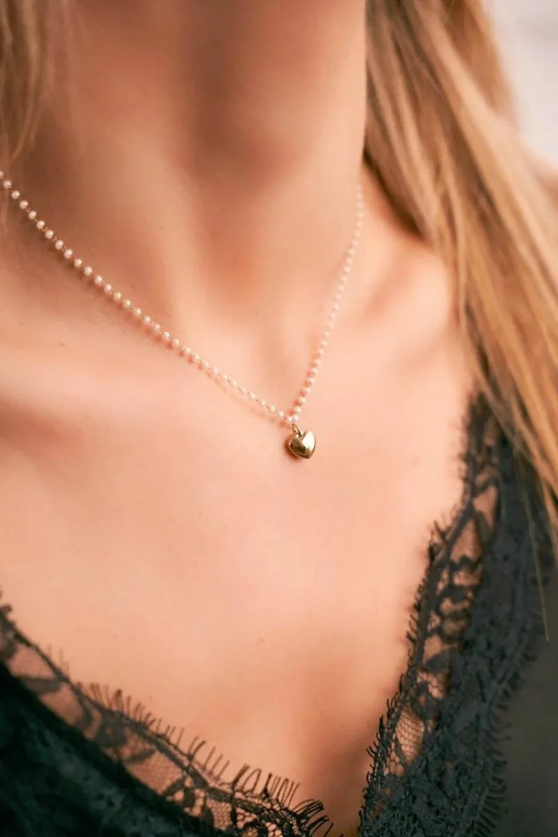Best Damski Złoty Naszyjnik Łańcuszek Perełki Serce Camilla Naszyjniki