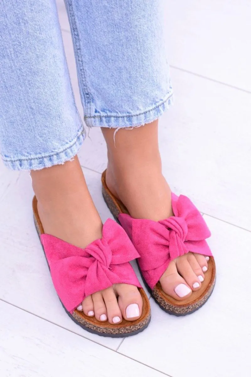 Best Damskie Klapki Na Korku Kokardki Wolly Fuksja Damskie Klapki Korkowe|Klapki Damskie Klasyczne