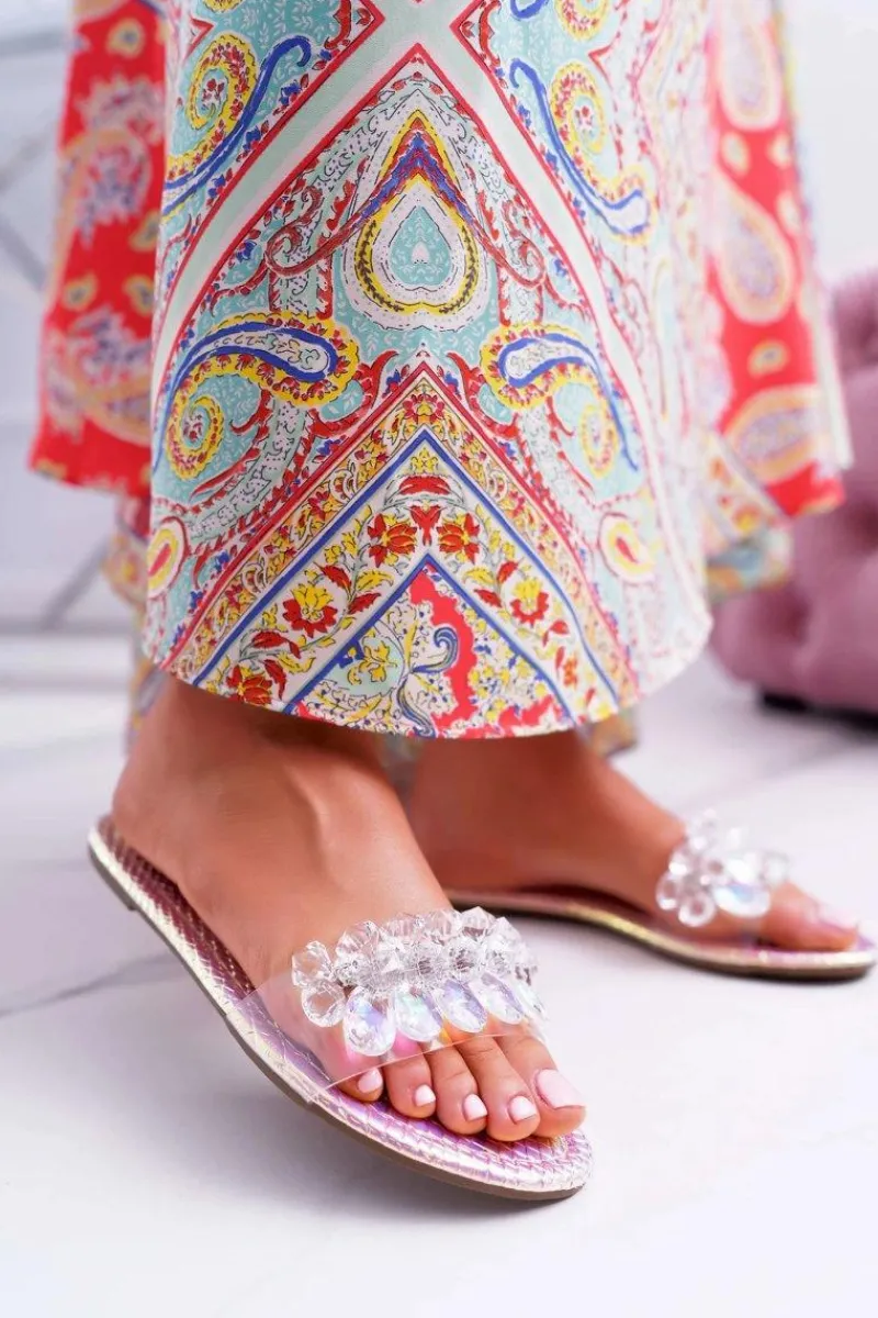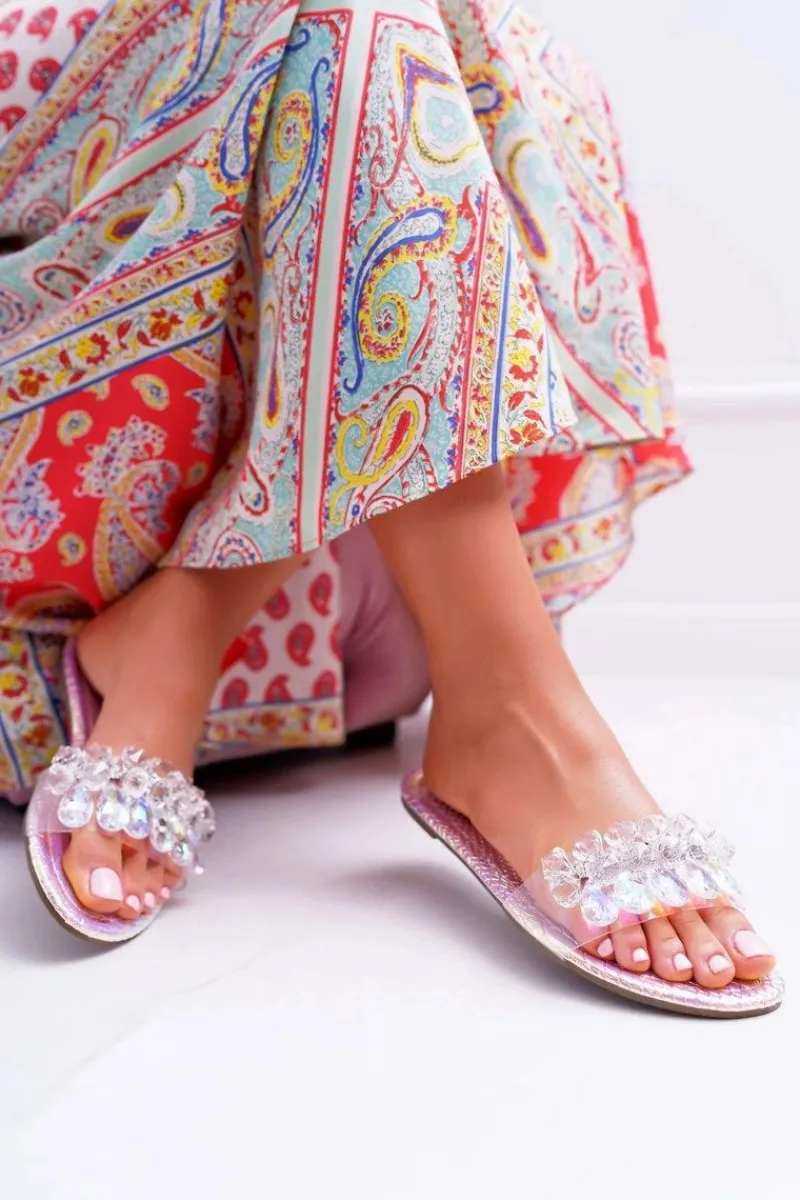 Hot Boto Damskie Klapki Z Kokardą I Cyrkoniami Różowe Jolene