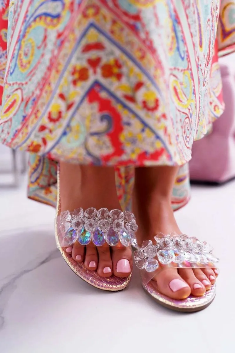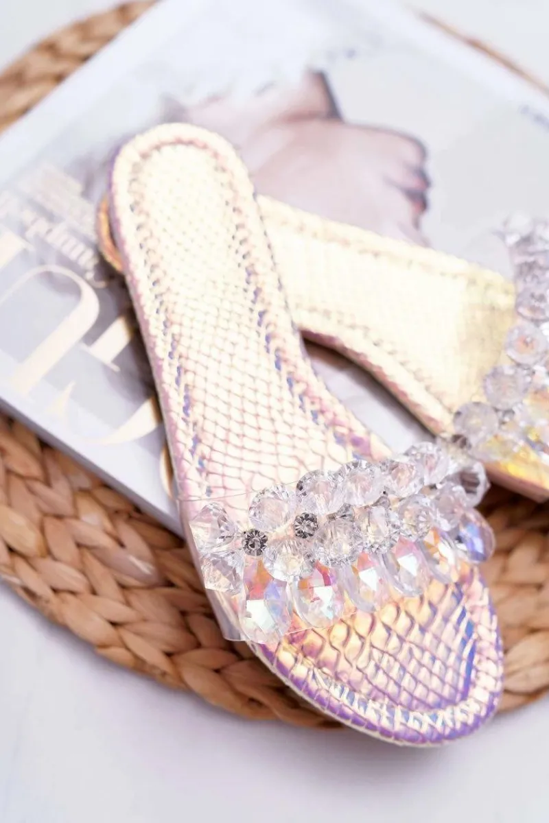 Best Damskie Klapki Z Cyrkoniami Lu Boo Benzynowe Różowe Mediana Damskie Klapki Damskie Klasyczne
