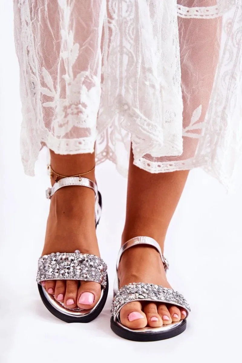 Best Damskie Klasyczne Sandałki Z Ozdobami Srebrne Florella Damskie Sandały Płaskie