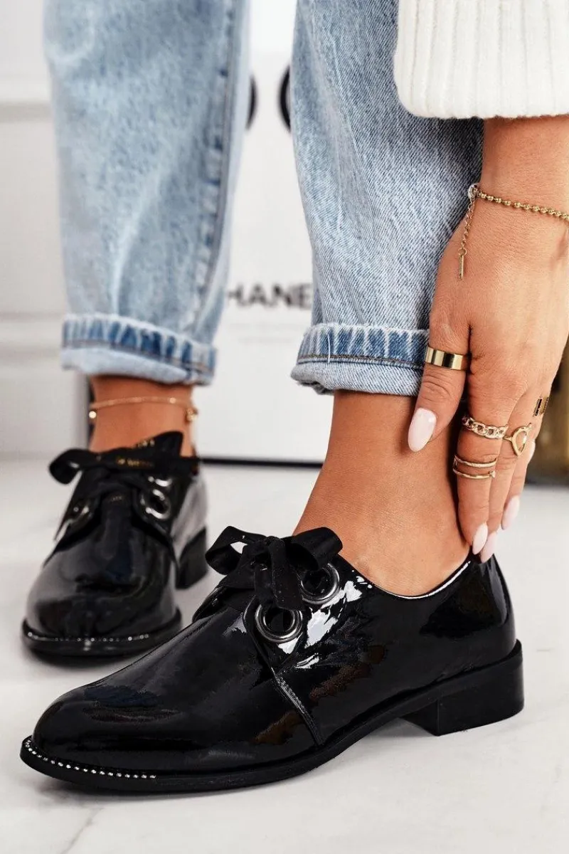 Best Damskie Lakierowane Półbuty 2044 Czarne Damskie Półbuty Lakierowane|Półbuty Skórzane