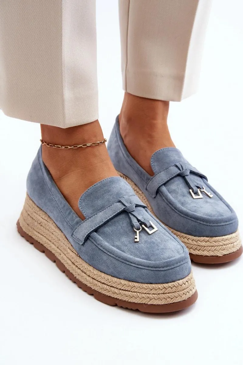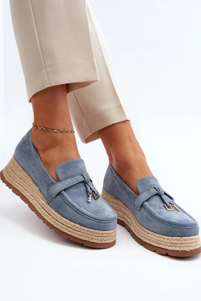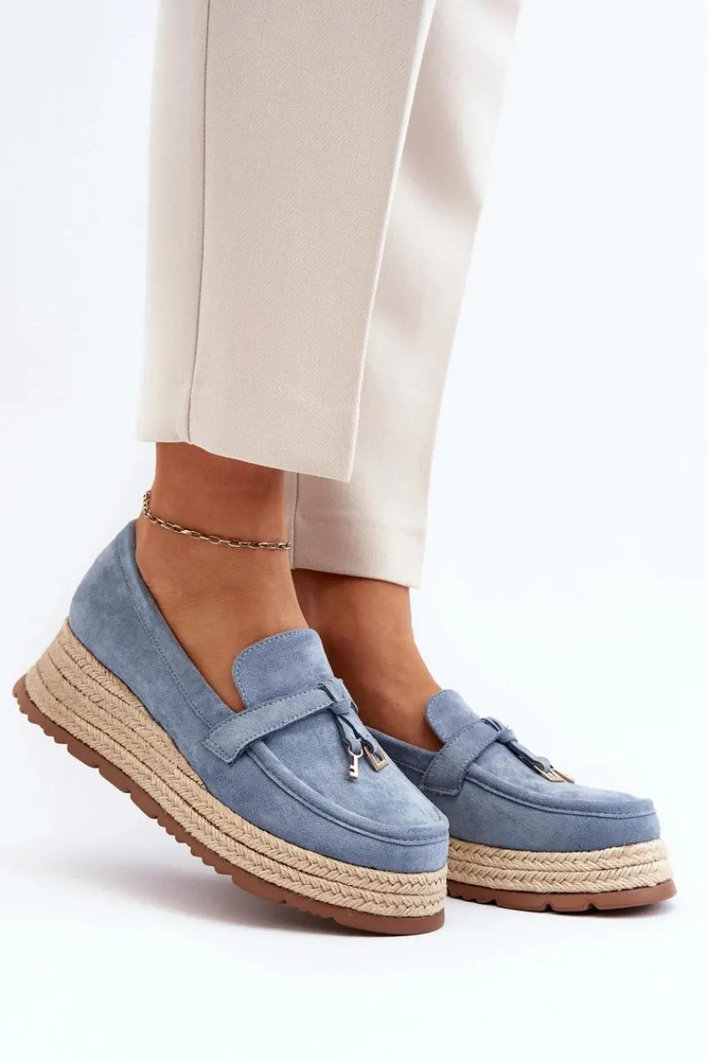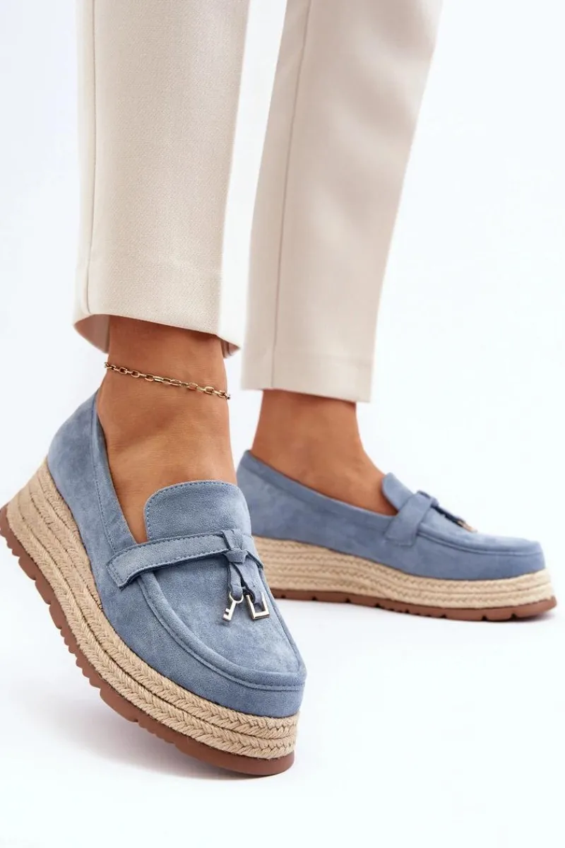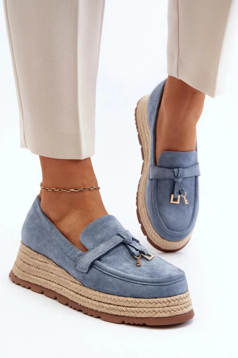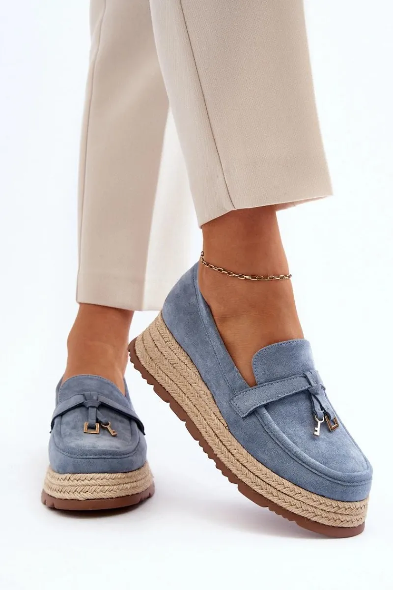 Wygodne mokasyny damskie wykonane są z miękkiego eko zamszu. Osadzone na plecionej platformie i koturnie. Noski zaokrąglone. Ich uniwersalny design pozwoli na dopasowanie ich do wielu różnych stylizacji. Koniecznie musisz je mieć w swojej wiosenno-letniej garderobie! Przy wyborze rozmiaru prosimy sugerować się tabelą rozmiarów.