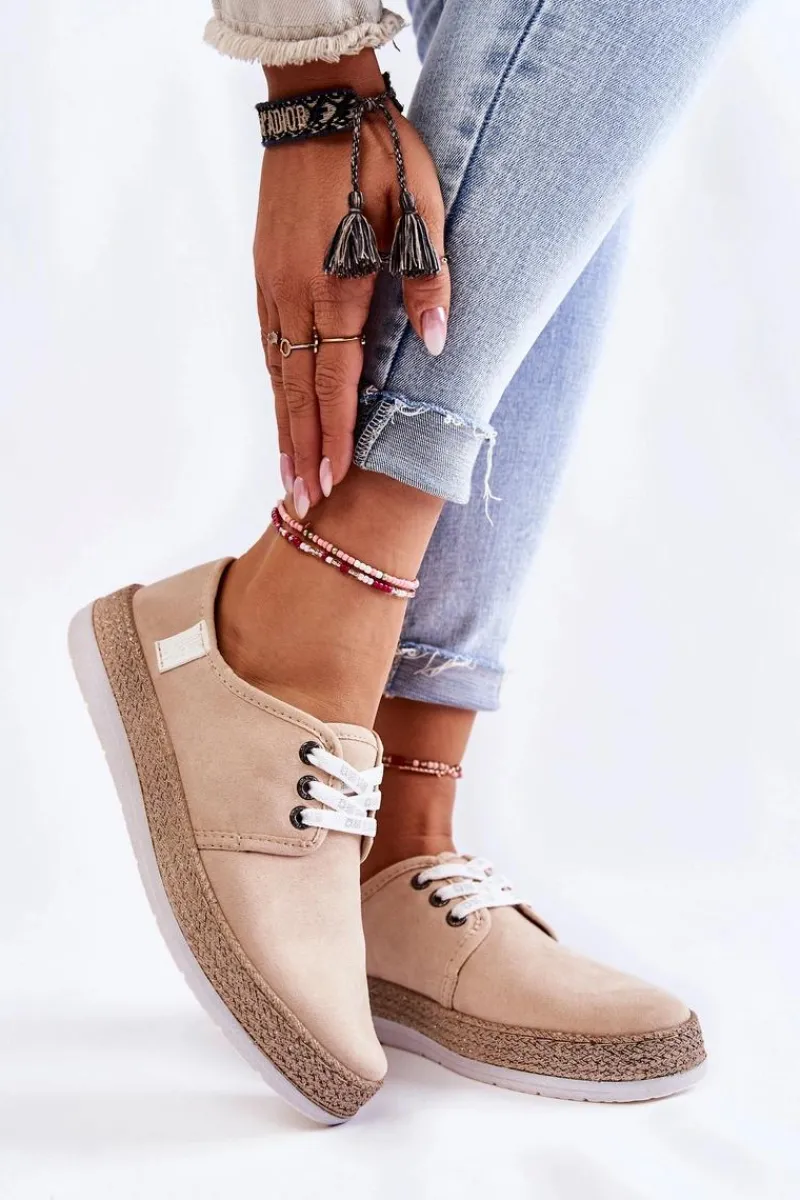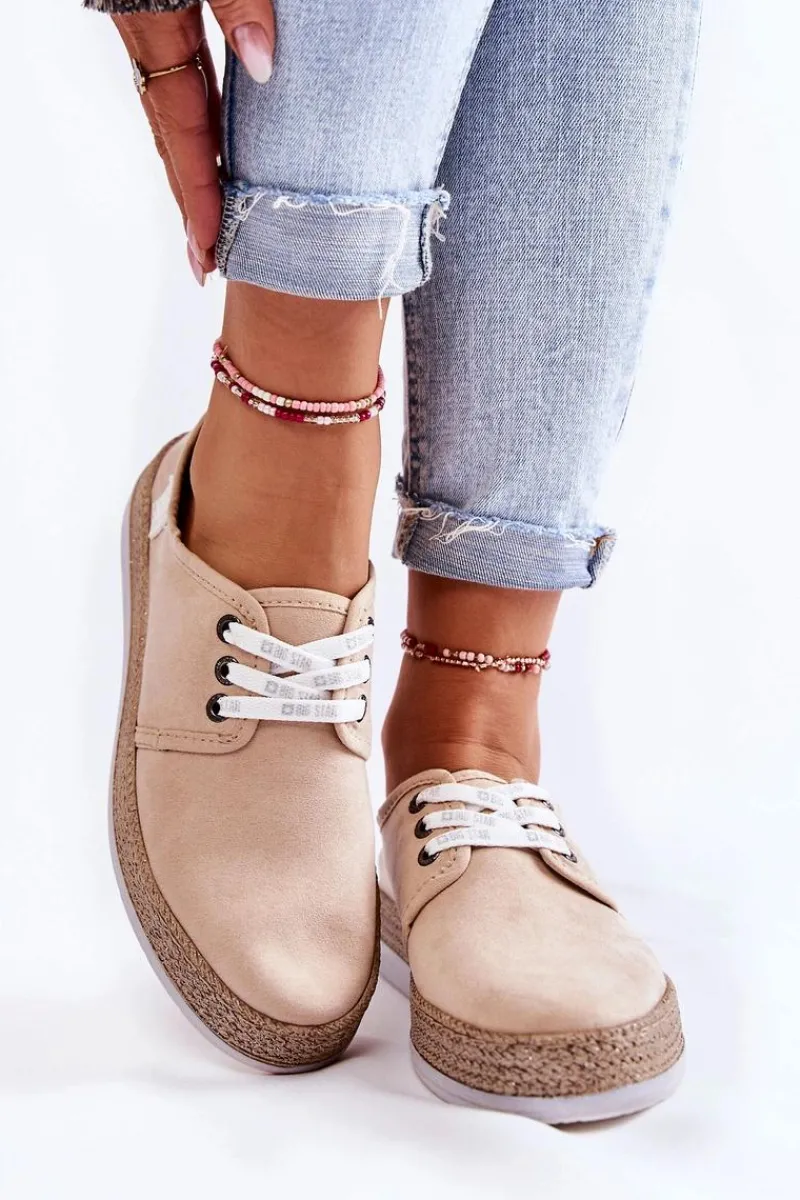 Niskie trampki damskie marki Big Star zostały wykonane z miłego w dotyku eko zamszu. Model wiązany na sznurowadła z logo marki Big Star. Buty zostały osadzone na platformie ozdobionej plecionką z gumowego tworzywa. Wkładka Memory Foam System zapamiętuje kształt stopy, co zapewnia doskonałe dopasowanie, absorbuje wstrząsy oraz jest odporna na odkształcenia. Struktura pianki pozwala na odparowanie wilgoci i regulację temperatury. Ten model powinien być Twój! Przy wyborze rozmiaru prosimy sugerować się tabelą rozmiarów.