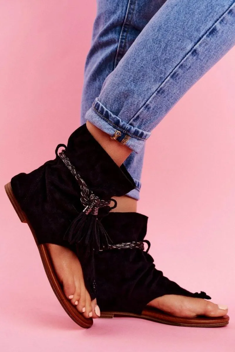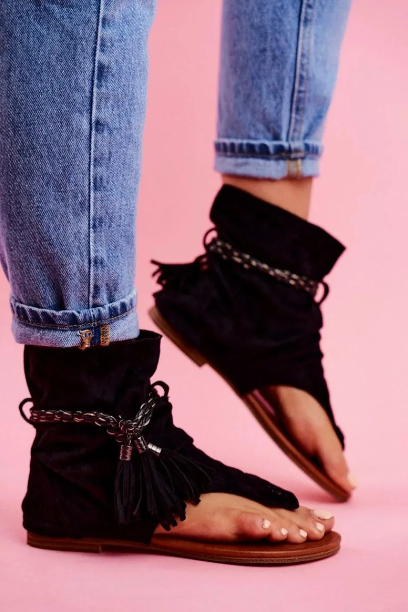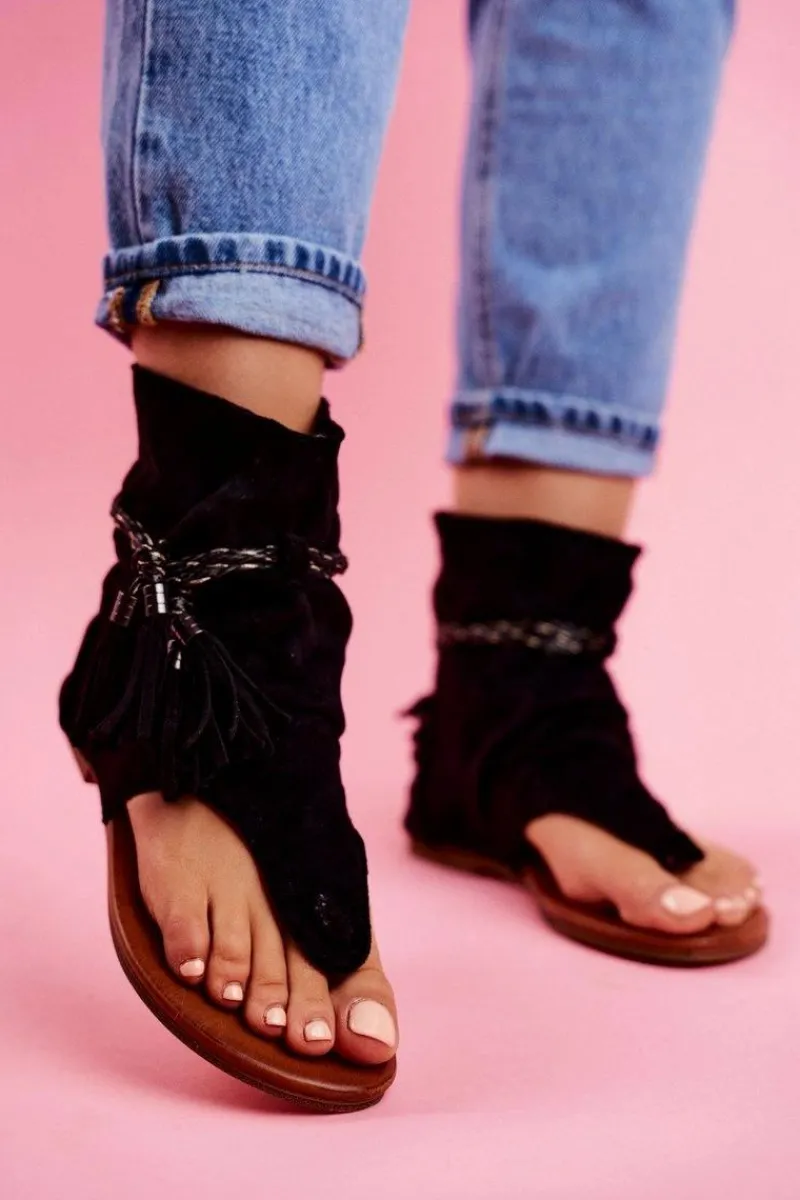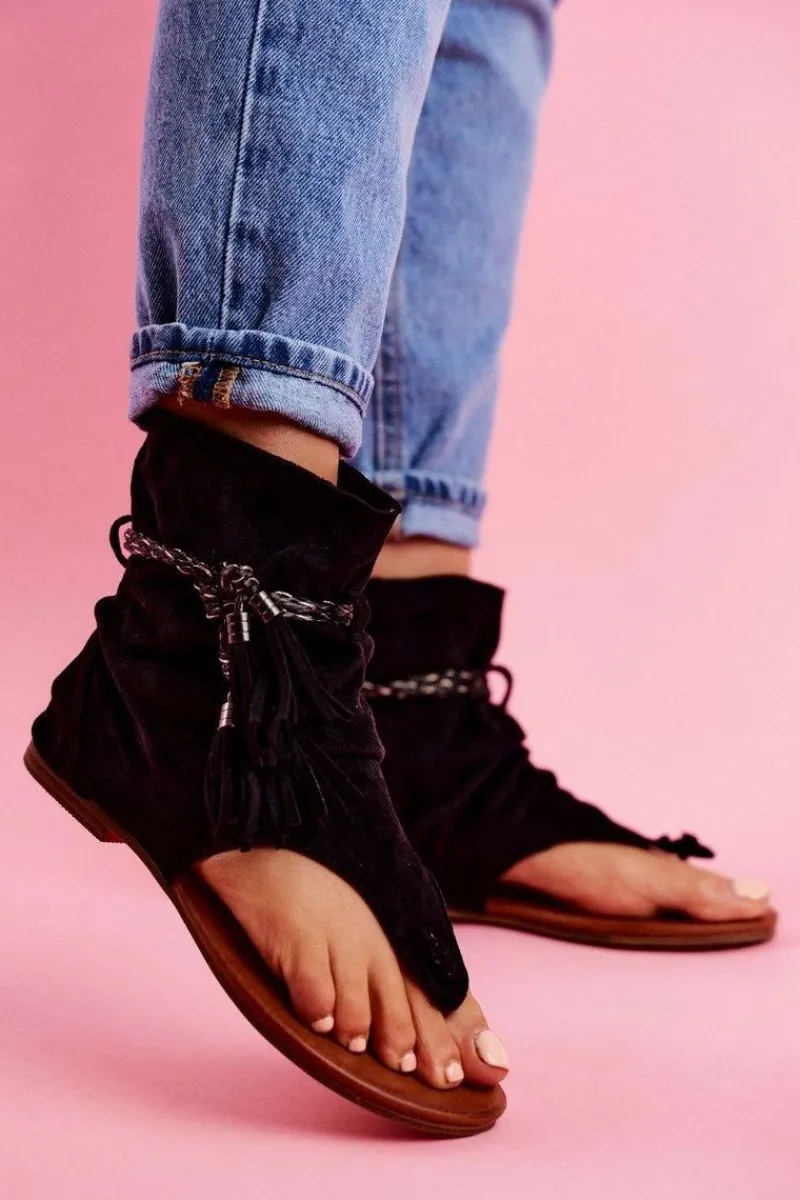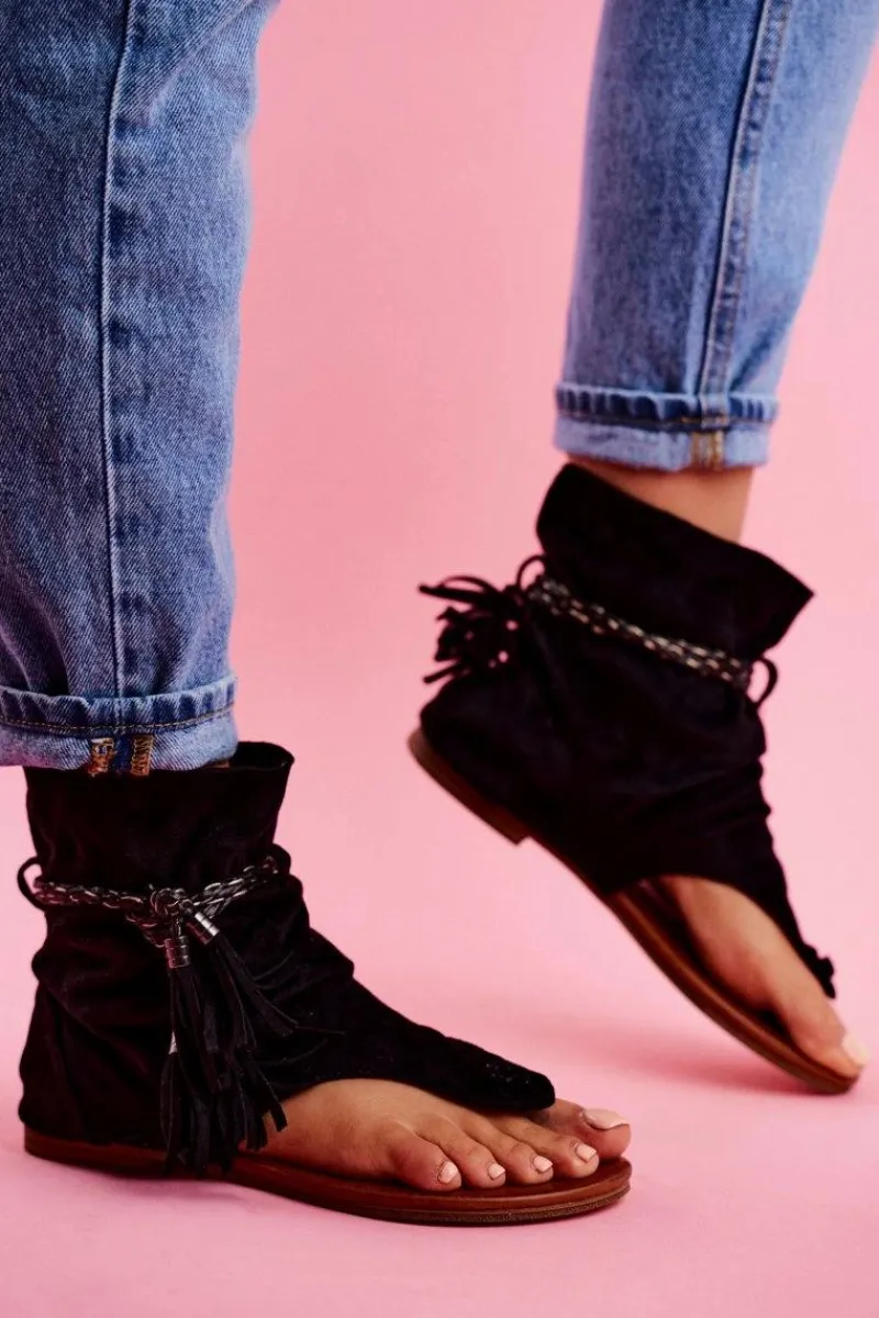Best Damskie Sandałki Japonki Z Cholewką Czarne SL1011 Madrit Damskie Sandały Płaskie
