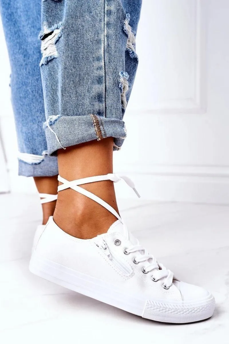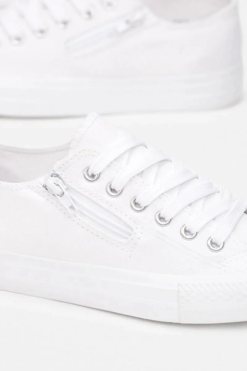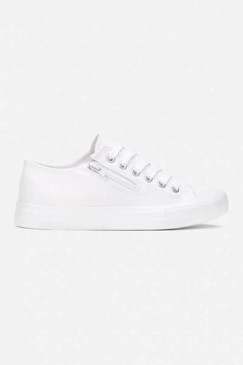 Klasyczne trampki damskie. Buty posiadają gumową podeszwę oraz miękką cholewkę. Wszyty suwak ułatwi zakładanie. Przy wyborze rozmiaru prosimy sugerować się tabelą rozmiarów.
