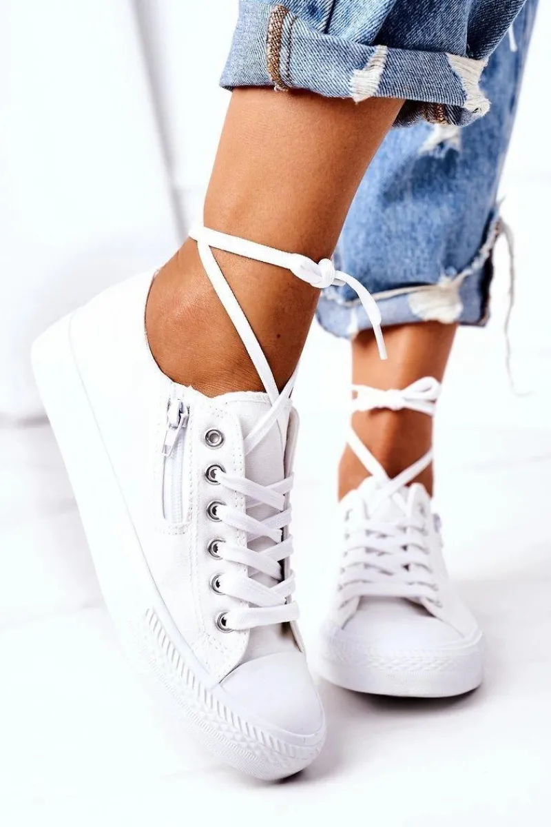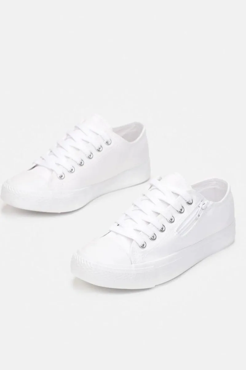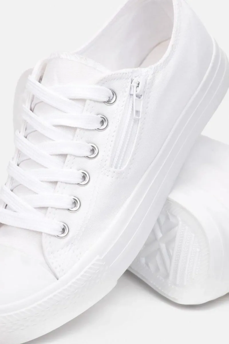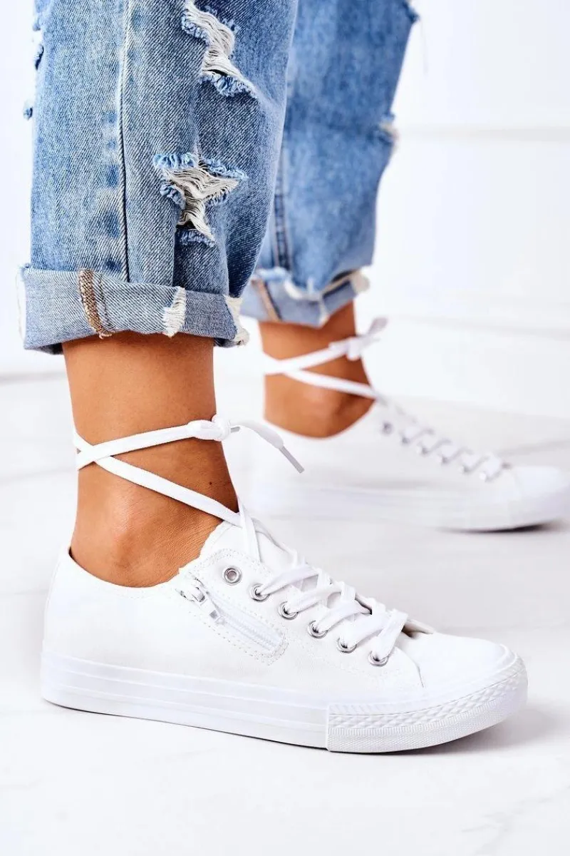 Klasyczne trampki damskie. Buty posiadają gumową podeszwę oraz miękką cholewkę. Wszyty suwak ułatwi zakładanie. Przy wyborze rozmiaru prosimy sugerować się tabelą rozmiarów.