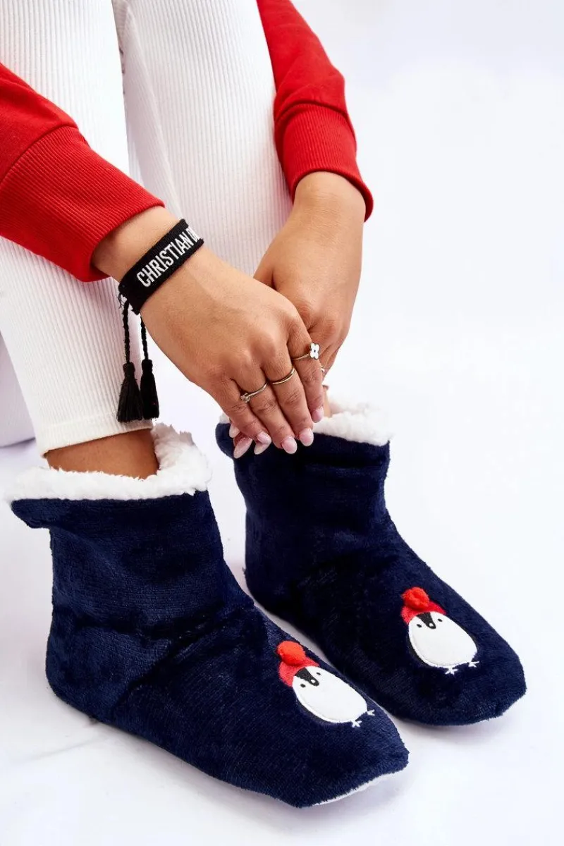 Idealne papcie damskie dla każdego zmarzlucha! Zostały wykonane z miękkiego materiału tekstylnego. Wewnątrz posiadają ocieplenie w postaci miękkiego kożuszka. Podeszwa z gumowego tworzywa z wypustkami jest antypoślizgowa. Papcie te świetnie izolują przed zimnem. Niezwykle wygodne i komfortowe podczas użytkowania. Ozdobione z przodu uroczym pingwinkiem. Przy wyborze rozmiaru prosimy kierować tabelą rozmiarów.