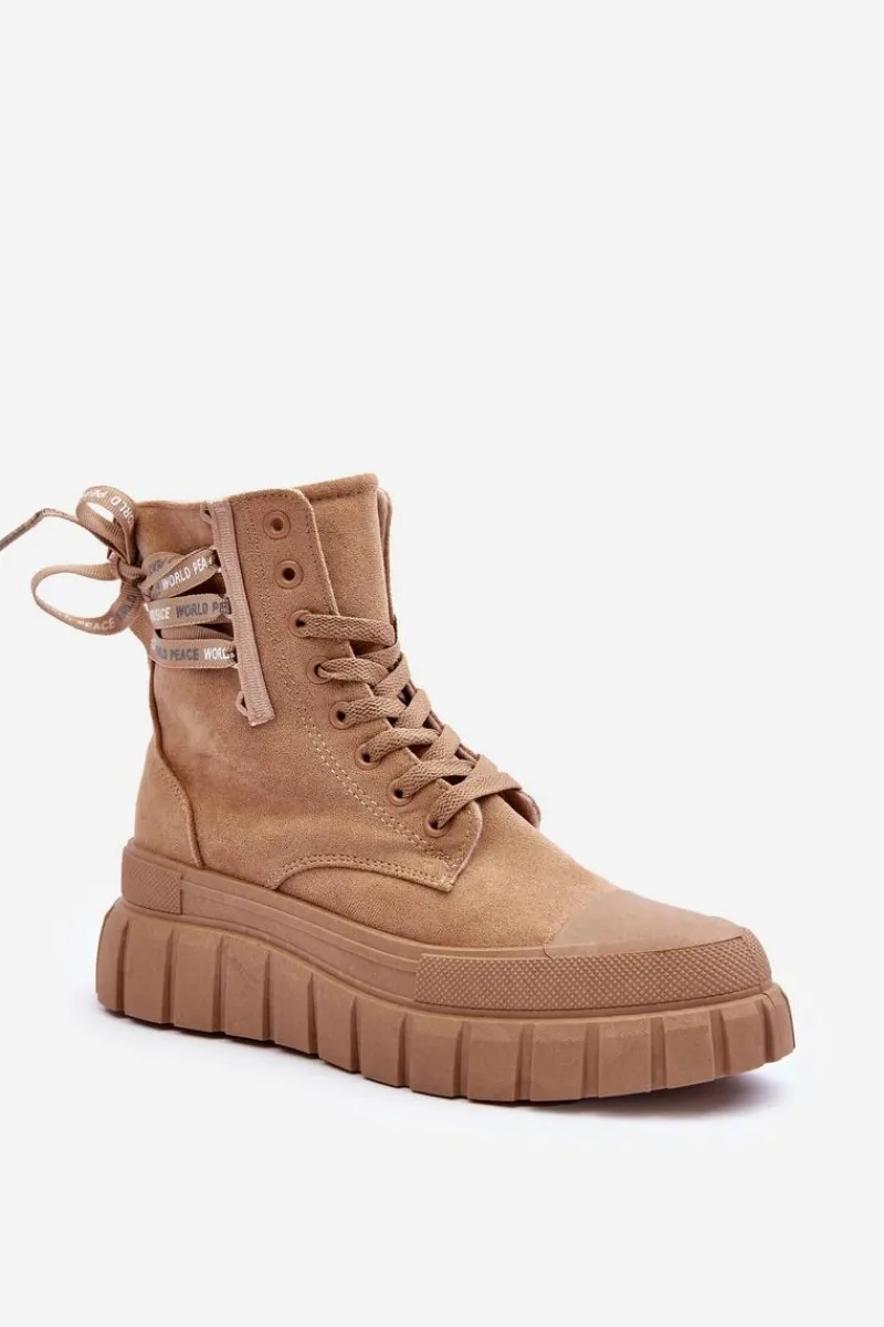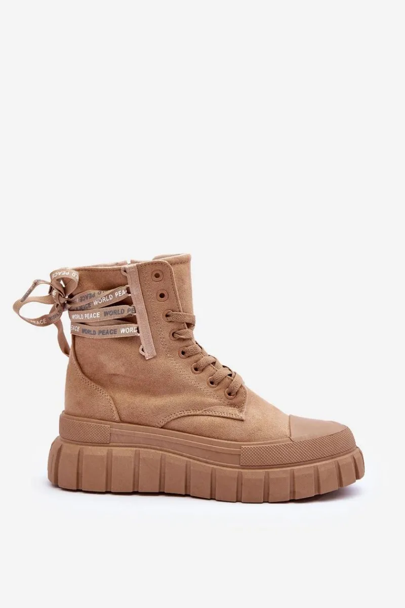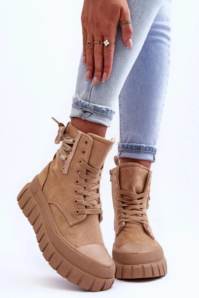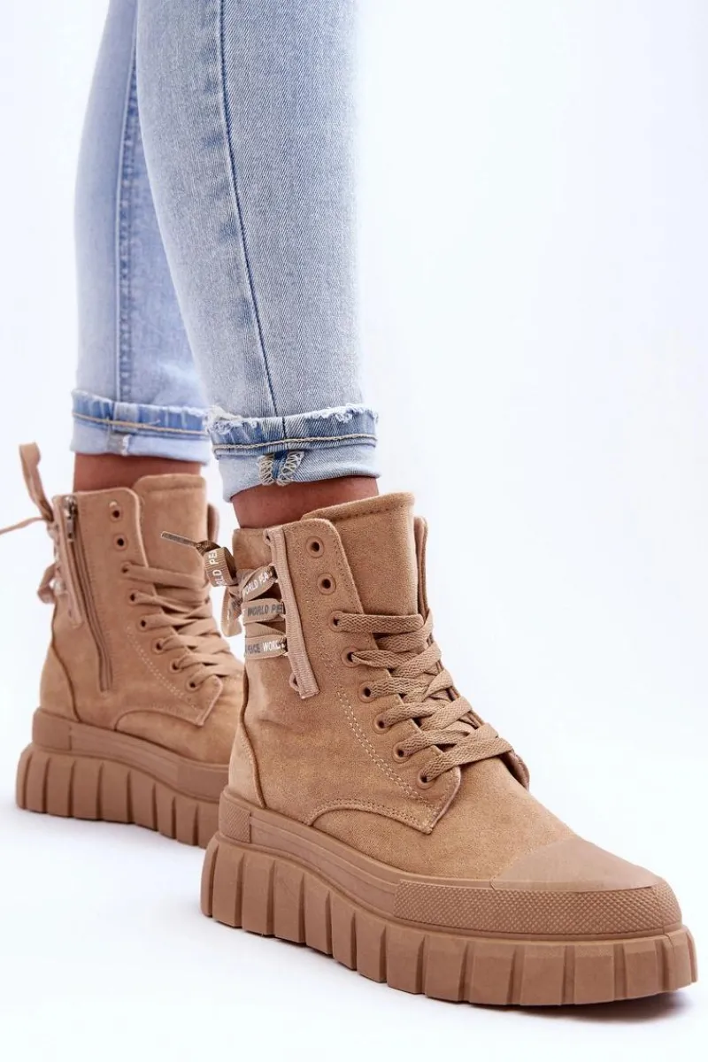 Modne botki damskie zostały osadzone na masywnej platformie z gumowego tworzywa. Wykonane z eko zamszu. Model ten zapinany jest na suwak z boku cholewki oraz dodatkowo sznurowany. Nosek jest zaokrąglony. Materiałowa wkładka zapewni komfort oraz wygodę. Koniecznie powinnaś je mieć w swojej garderobie. Przy wyborze rozmiaru prosimy sugerować się tabelą rozmiarów.