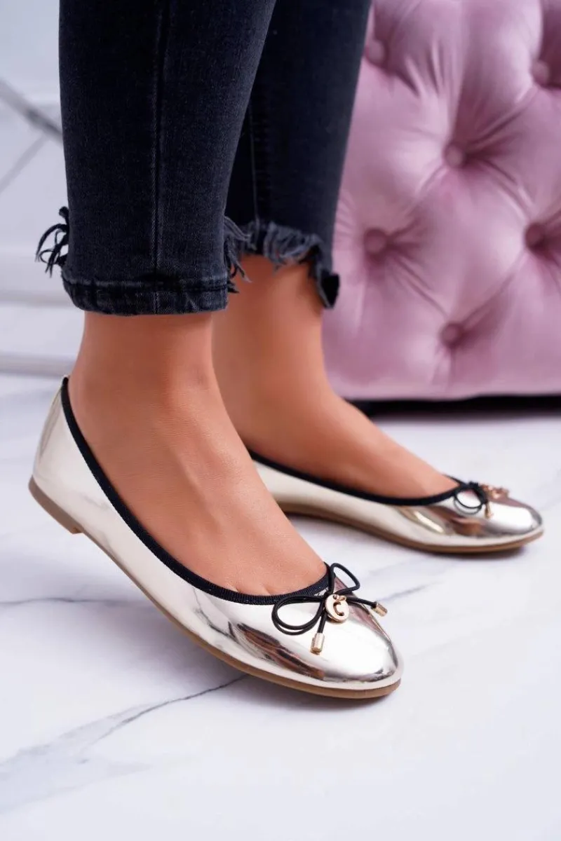 Best Damskie Złote Wsuwane Balerinki Cleoss Damskie Baleriny Klasyczne