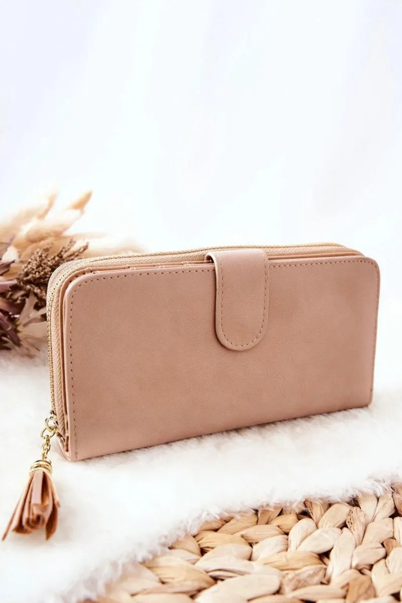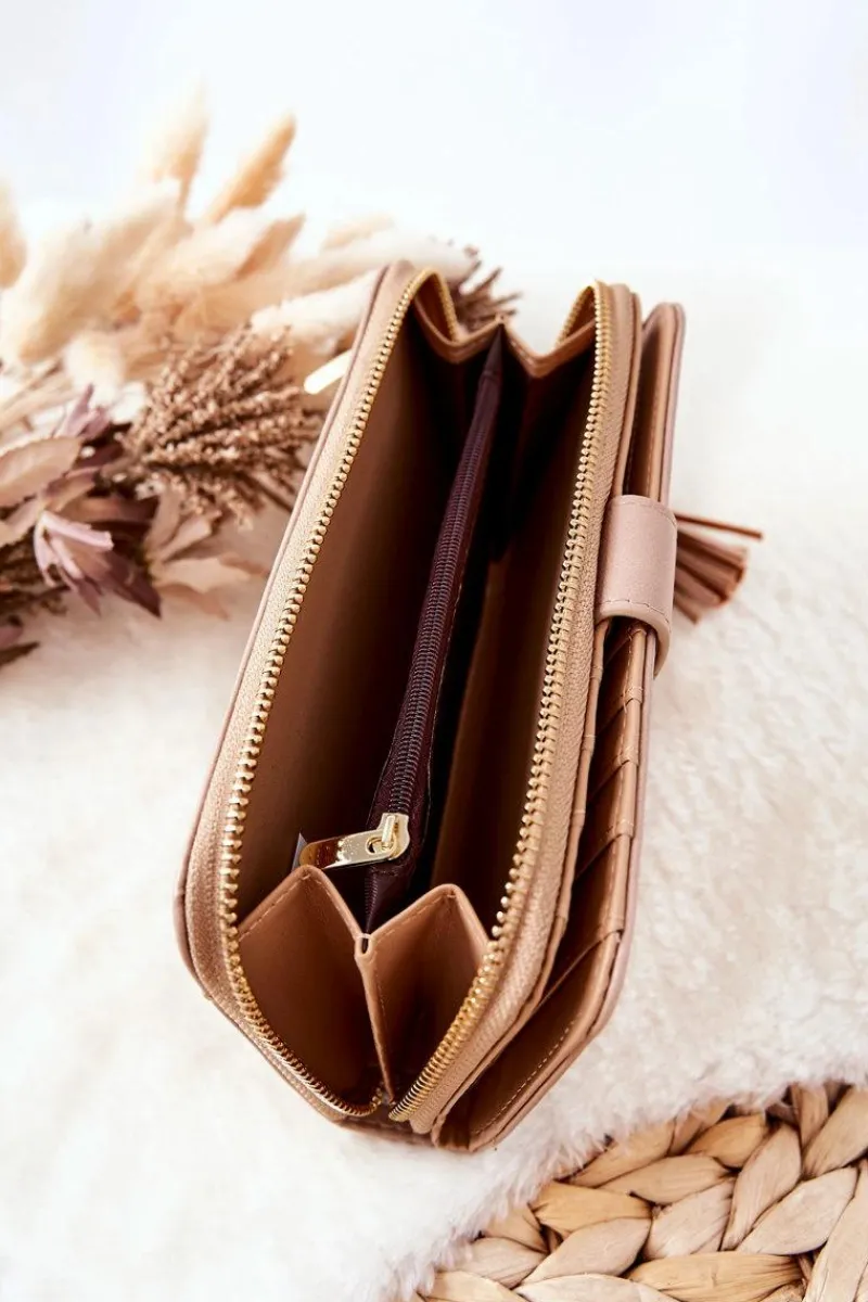 Praktyczny portfel posiada dwie zewnętrzne portmonetki oraz jedną wewnętrzną zapinane na zamek błyskawiczny, które pomieszczą bilony. Posiada także zapinanie na zatrzask, gdzie bez problemu zmieszczą się karty płatnicze, banknoty czy wizytówki. Portfel został wykonany ze skóry ekologicznej, dostępny w wielu wariantach kolorystycznych. Na jednym z suwaków znajduje się frędzelek. Koniecznie sprawdź pozostałe modele portfeli i wybierz swój wymarzony!