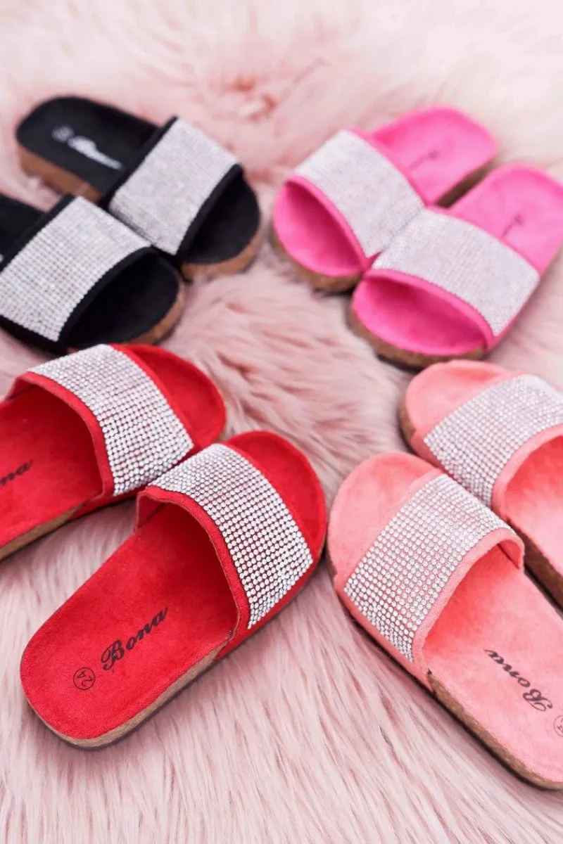 Hot Boto Damskie Klapki Z Kokardą I Cyrkoniami Różowe Jolene