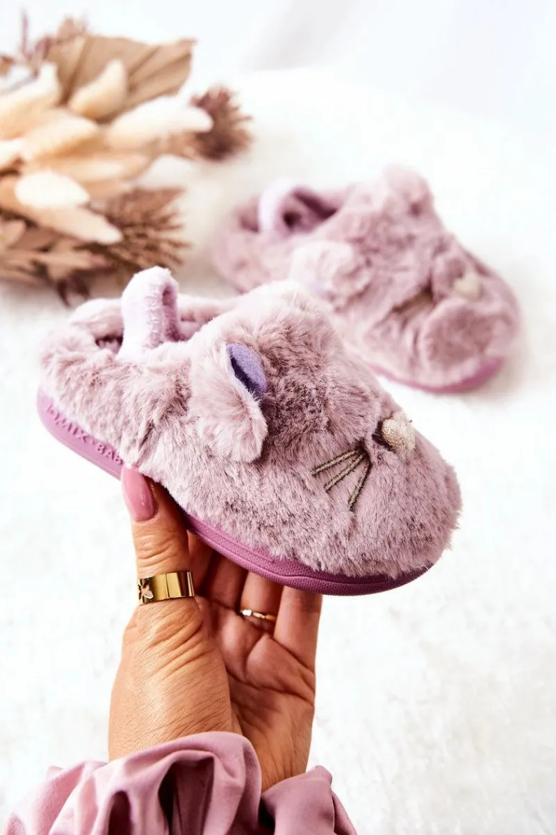 Śliczne papcie z motywem kotka z odstającymi uszkami. Wykonane z przyjemnego w dotyku materiału. W środku znajduje się miękkie ocieplenie. Gruba podeszwa chroni przed zimnym podłożem. Papcie od rozmiaru 24 do 29 posiadają także materiałową gumkę przytrzymującą stopę, rozmiary od 30 do 35 jej nie posiadają. Sprawdź także pozostałe modele papci dostępne w naszej ofercie!Przy wyborze rozmiaru prosimy sugerować się tabelą rozmiarów.