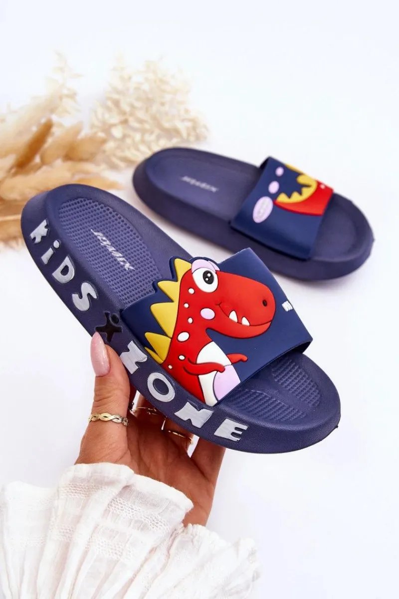 Best Dziecięce Piankowe Klapki Dinozaur Granatowe Dario Dzieci Chłopięce|Dziewczęce