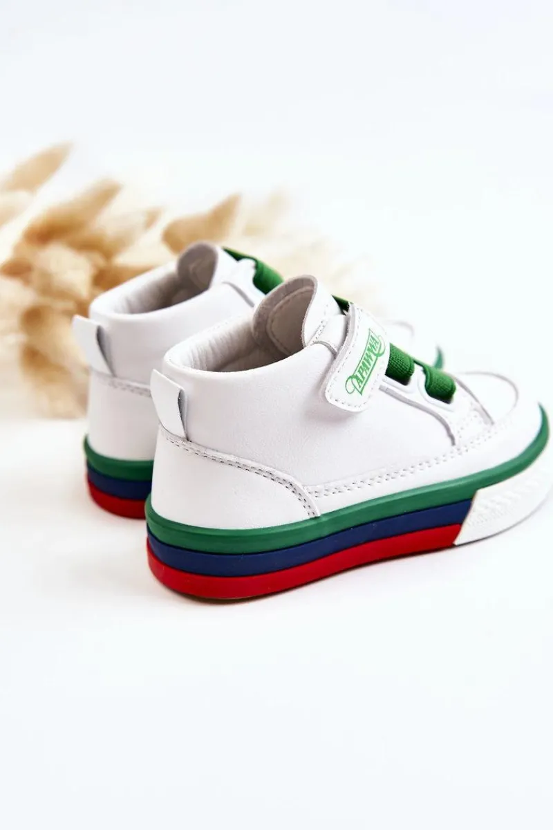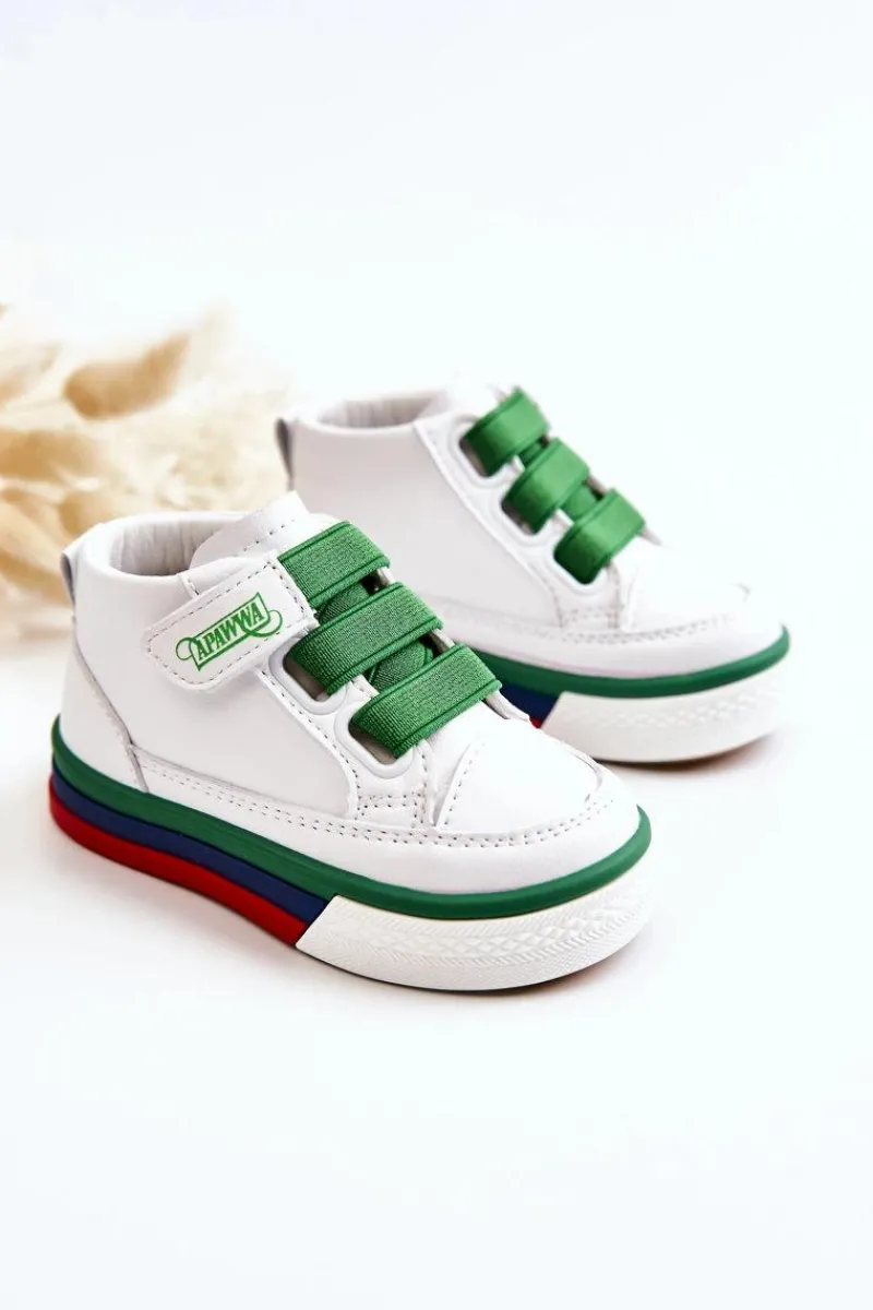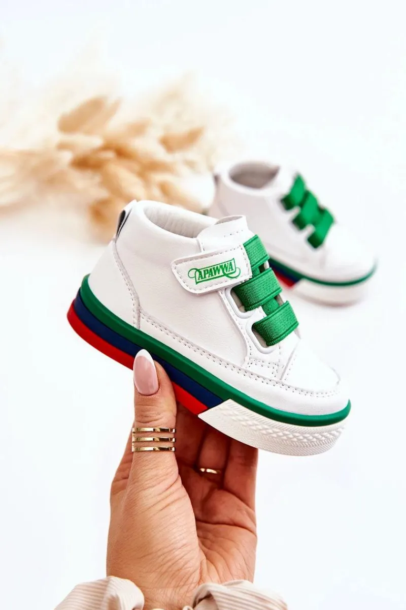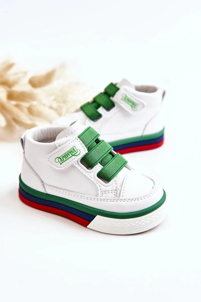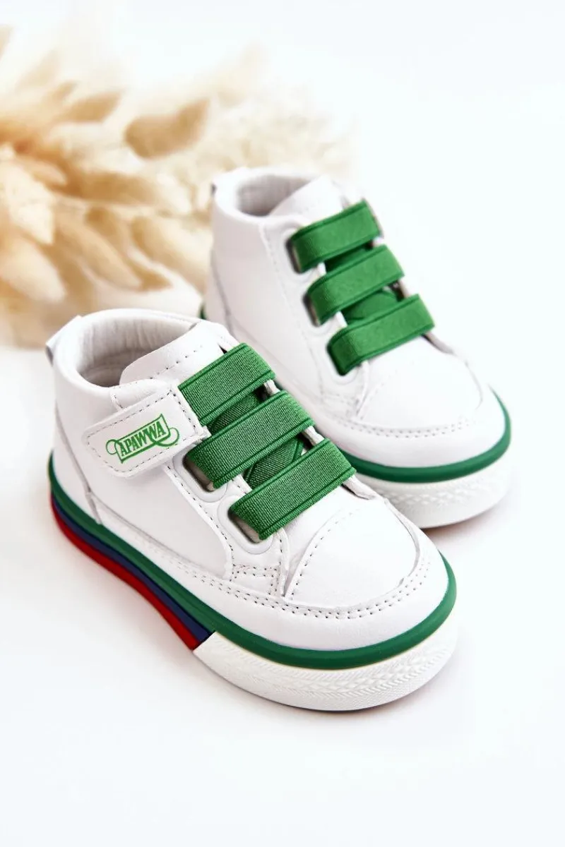 Dziecięce wysokie trampki wykonane są z wysokiej jakości eko skóry. Posiadają antypoślizgową podeszwę wykonaną z gumowego tworzywa. Miękka, skórzana wkładka. Buty posiadają rzep i gumy ściągające zamiast sznurówek. Osadzone na kolorowej platformie. Posiadają z tyłu pętelkę ułatwiającą zakładanie obuwia. Koniecznie sprawdź całą naszą kolekcję dziecięcych trampek. Przy wyborze rozmiaru prosimy sugerować się tabelą rozmiarów.