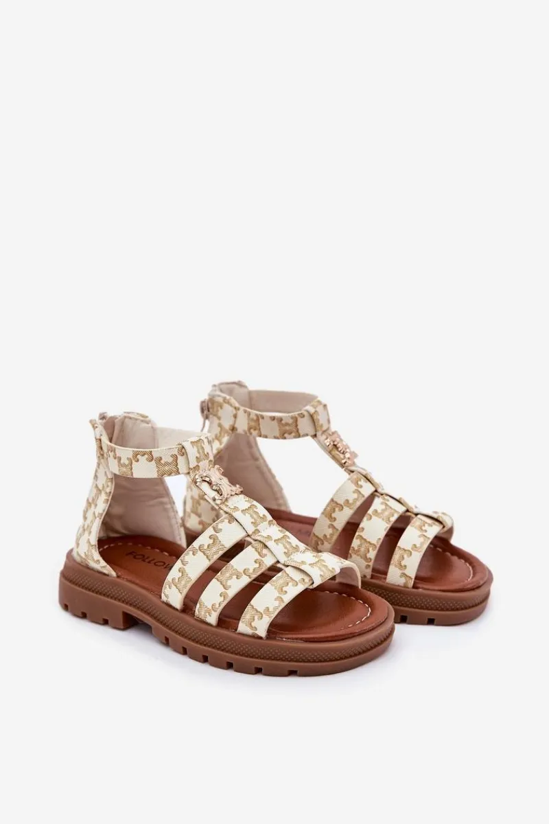 Sandałki gladiatorki dla dziewczynek to stylowa i wygodna opcja na ciepłe dni. Z przodu znajduje się złoty detal, który dodaje wyjątkowego uroku. Zapinane z tyłu na zamek, zapewniają łatwość zakładania i doskonałe dopasowanie. Miękka wkładka gwarantuje komfort przez cały dzień, sprawiając, że sandałki będą idealne do codziennych stylizacji oraz na letnie przygody. Przy wyborze rozmiaru prosimy sugerować się tabelą rozmiarów.