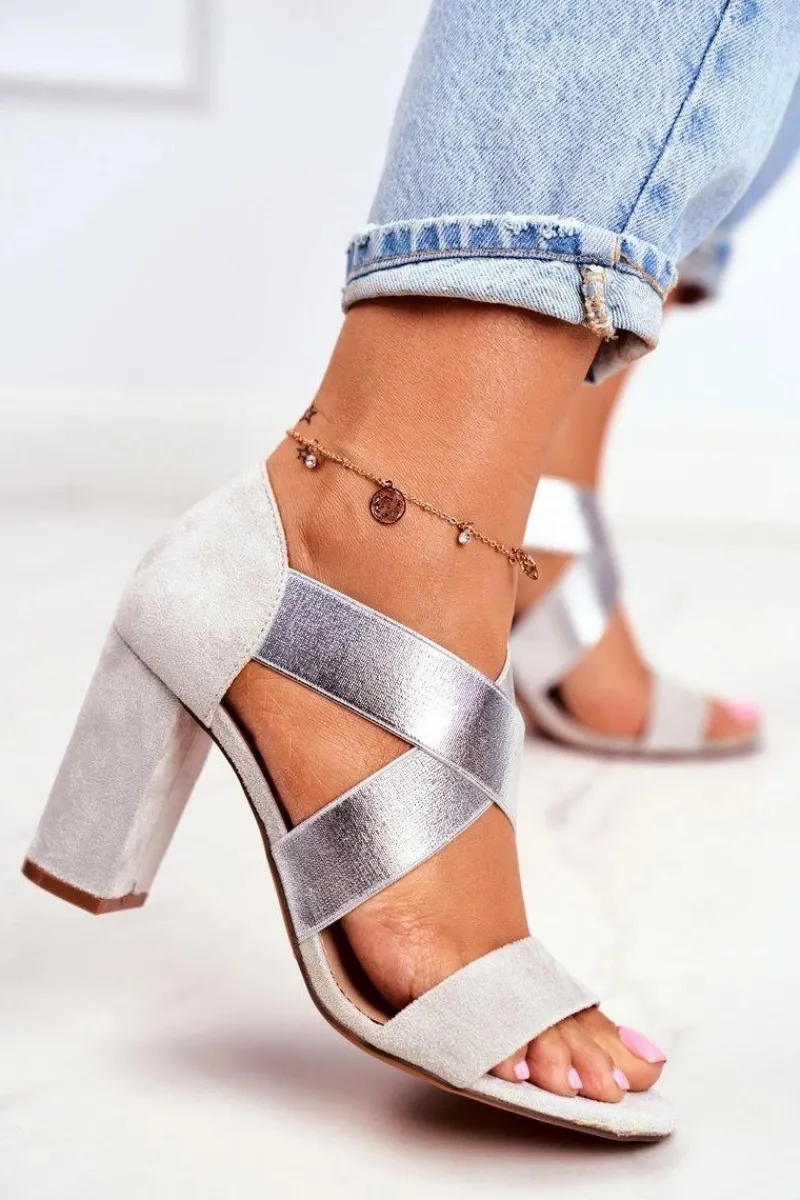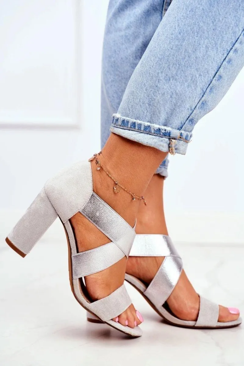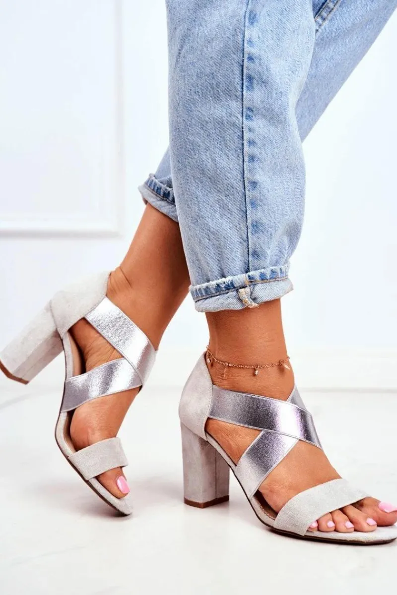 Best Eleganckie Wsuwane Sandały Na Słupku Szaro-Srebrne Varina Damskie Sandały Na Obcasie