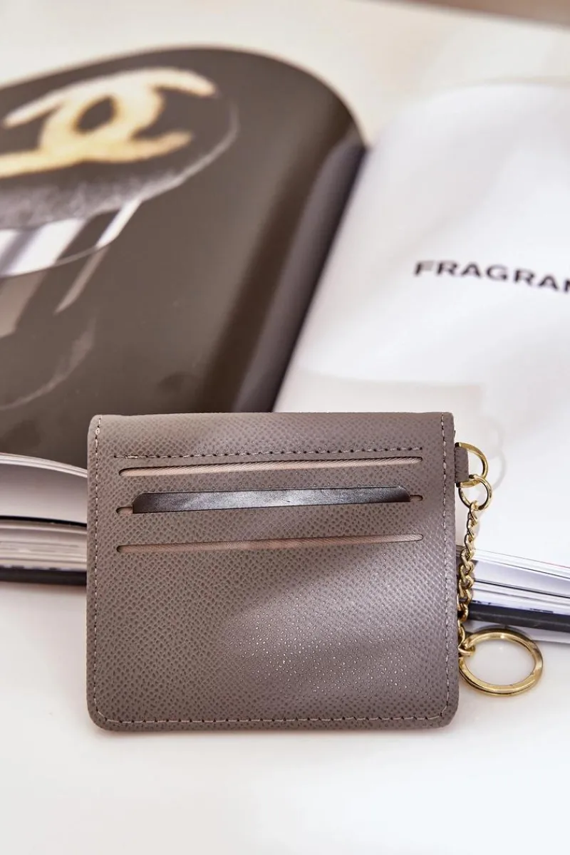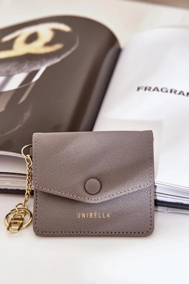 Praktyczne i eleganckie etui na karty wykonane z eko skóry. Zapinane na zatrzask, zapewnia wygodę i bezpieczeństwo przechowywania. Dodatkowym atutem jest ozdobny złoty brelok. Stylowy i funkcjonalny dodatek, idealny do codziennego użytku.