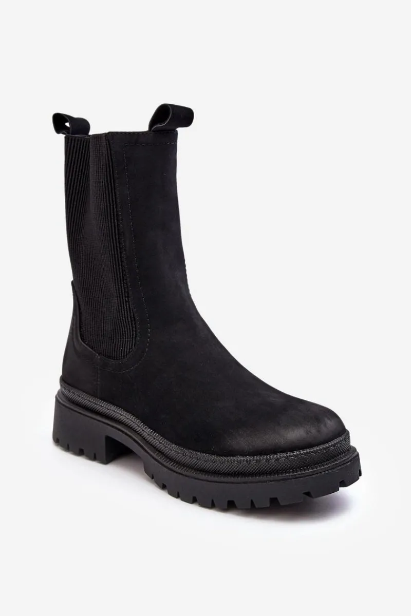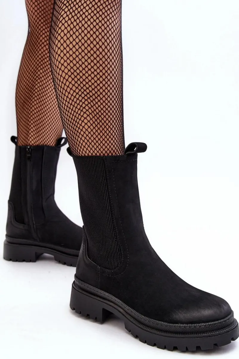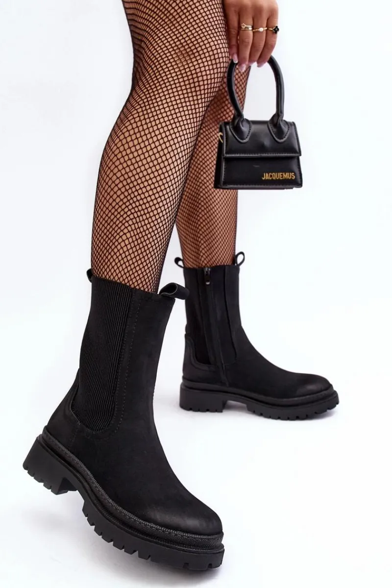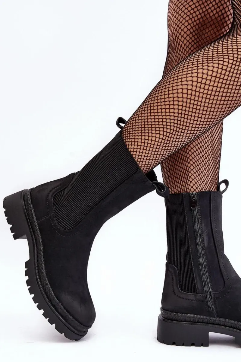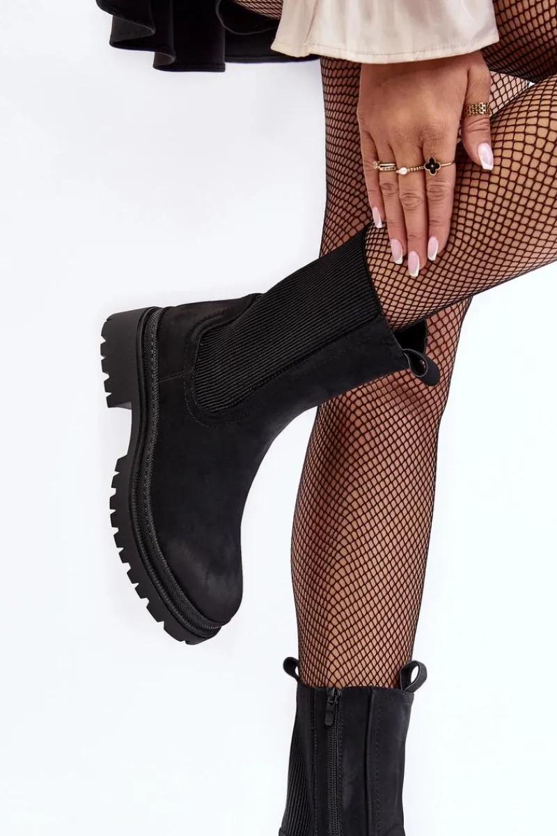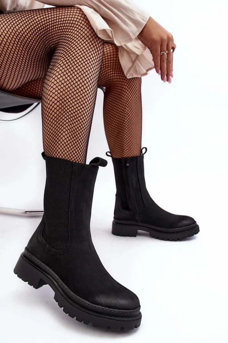 Botki w stylu sztybletów posiadają cholewkę z gumą pozwalające na odpowiednie dopasowanie obuwia do tęgości nogi. Model ten posiada suwak z boku cholewki. Botki osadzono na płaskim obcasie i platformie. Ocieplone wewnątrz miłym w dotyku kocem obuwniczym. Zapiętek w tym obuwiu jest usztywniany. Idealny model na chłodne dni! Przy wyborze rozmiaru prosimy sugerować się tabelą rozmiarów.