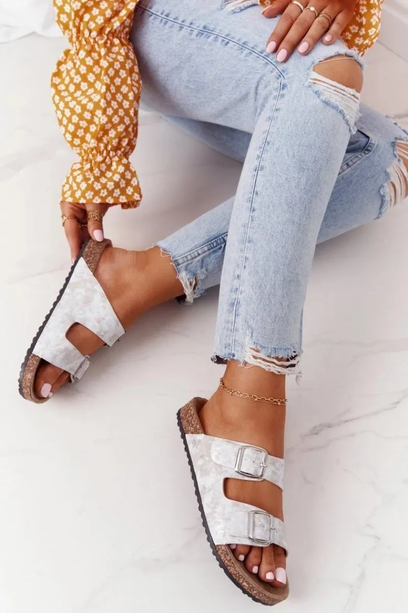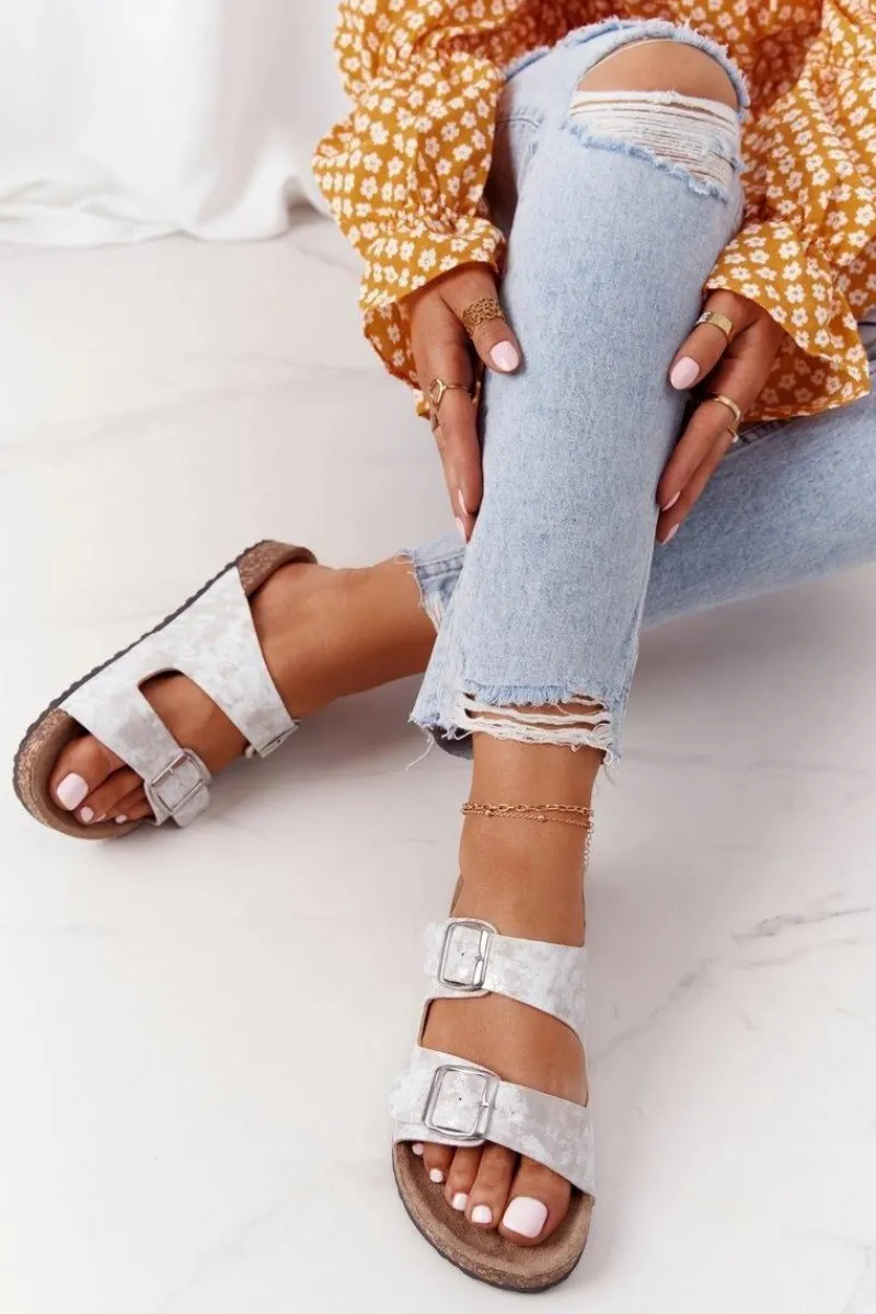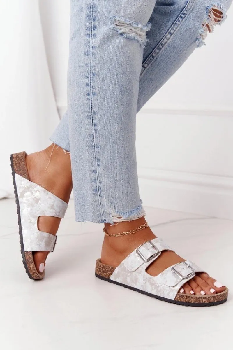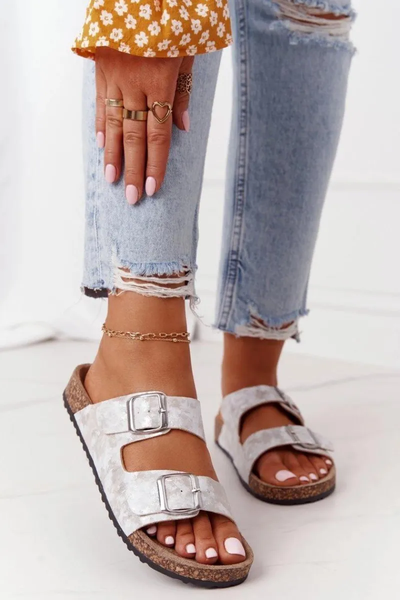 Best Evento Damskie Klapki Na Korku Z Klamrami Srebrne Vivio Szary