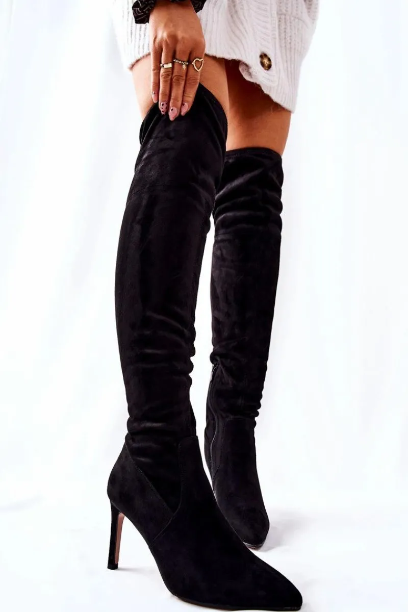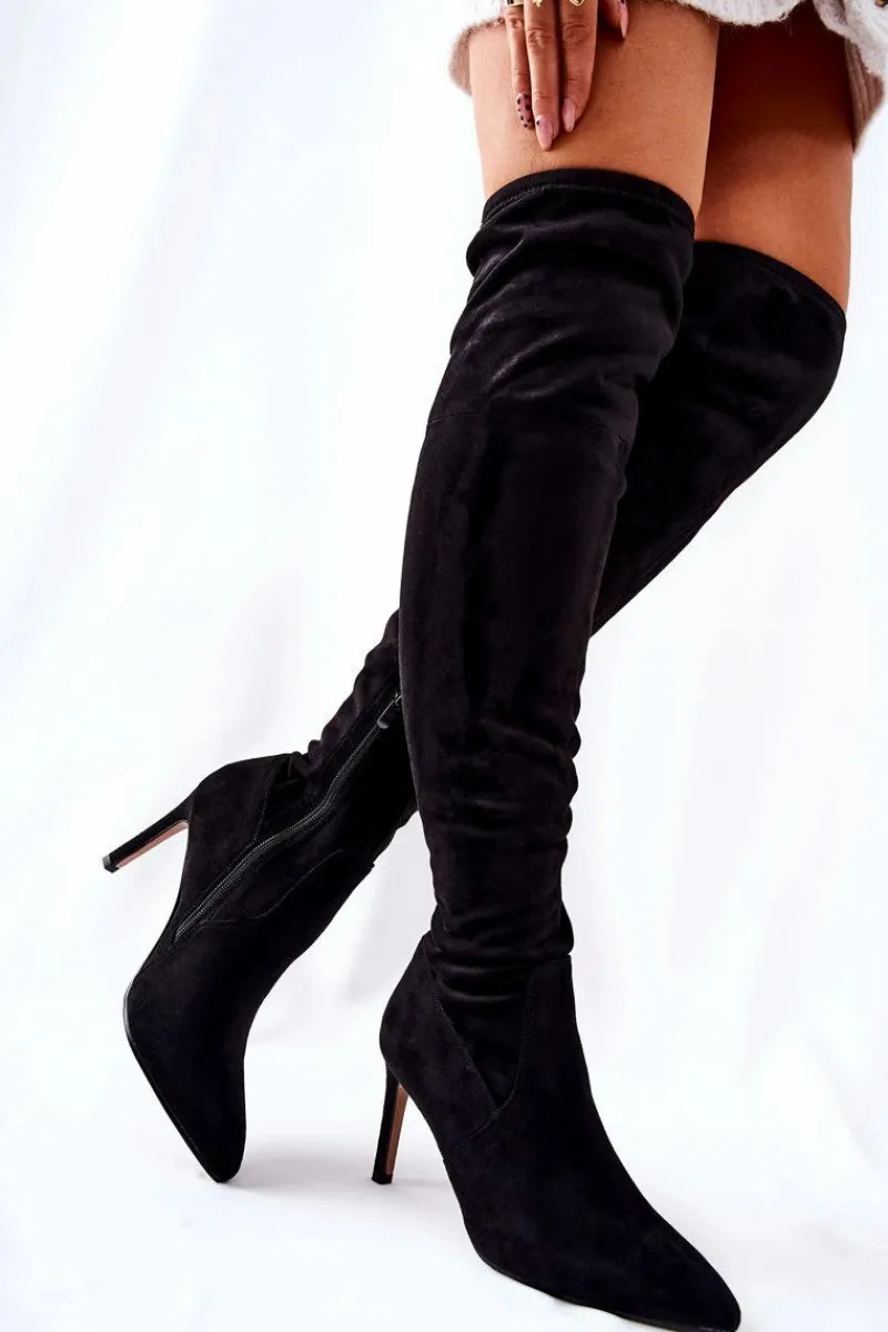 Niezwykłe kozaki za kolano zostały wykonane z zamszowej eko skóry. Zapinane na suwak w dolnej części cholewki. Obcas w postaci szpilki. Usztywniana ocieplana cholewka na wysokości stopy. Koniecznie musisz mieć ten model w swojej garderobie! Nie czekaj zanim znikną! Przy wyborze rozmiaru prosimy kierować tabelą rozmiarów.