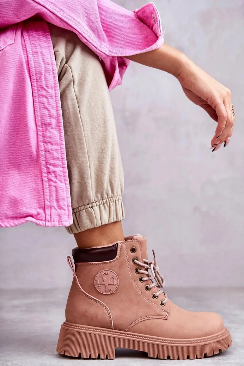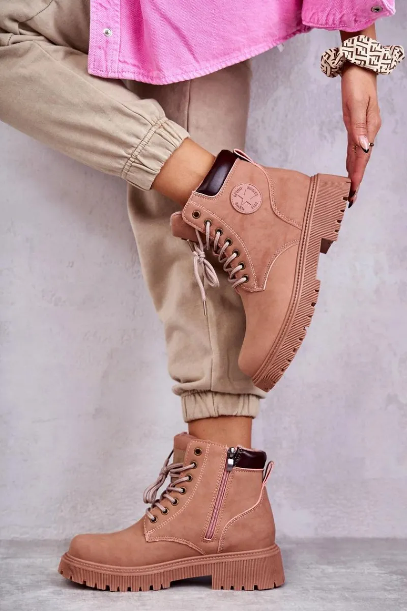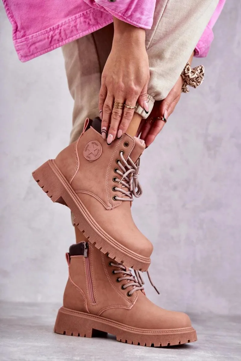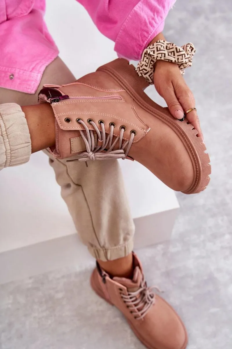 Botki w stylu traperów idealnie sprawdzą się na chłodniejsze dni! Zostały wykonane z eko skóry. Posiadają klasyczne sznurowanie oraz suwak z boku cholewki. Model z dodatkowo usztywnianym zapiętkiem. Ocieplone wewnątrz miłym w dotyku kocem obuwniczym. Trapery osadzono na delikatnej platformie oraz płaskim obcasie. Przy wyborze rozmiaru prosimy sugerować się tabelą rozmiarów.