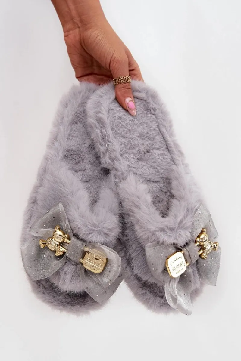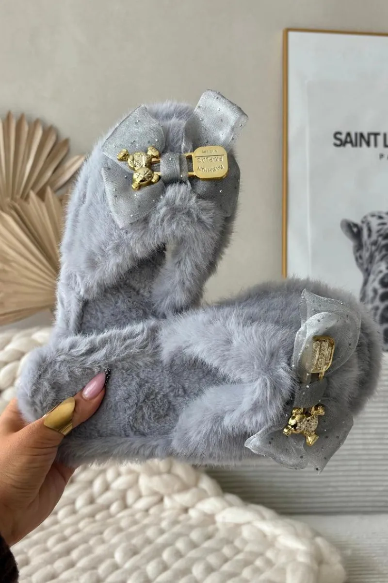Futrzane kapcie damskie to idealne połączenie komfortu i modnych detali. Wykonane z miękkiego, przyjemnego w dotyku futerka zapewniają wyjątkową wygodę i ciepło. Uwagę przyciąga kokardka z przodu, ozdobiona złotą broszką w formie misia z napisem – to subtelny, a jednocześnie efektowny detal, który nadaje całości uroku i oryginalnego charakteru. Dzięki nim codzienne chwile w domu stają się jeszcze przyjemniejsze i bardziej stylowe. Przy wyborze rozmiaru prosimy sugerować się tabelą rozmiarów.