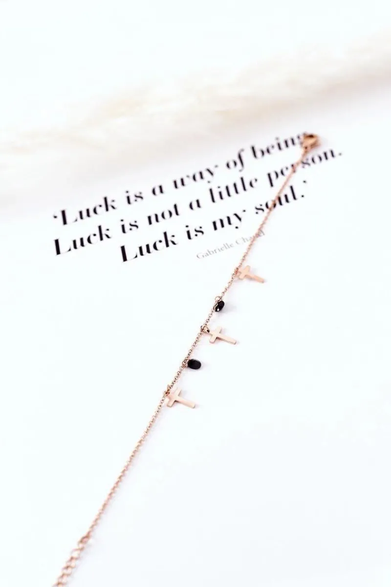 Best Glam Chic Bransoletka Na Łańcuszku Z Krzyżykami Różowe Złoto