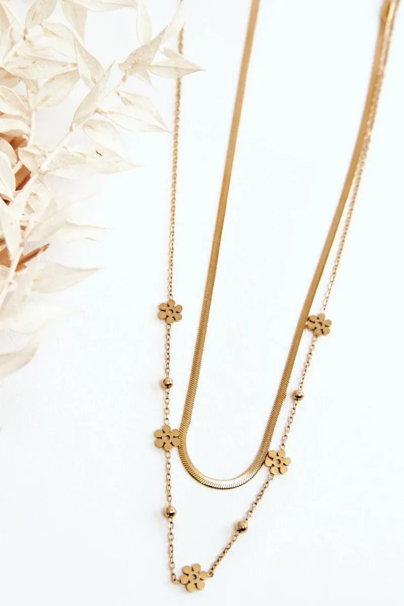Best Glam Chic Damski Łańcuszek Żmijka Z Kwiatami Złoty
