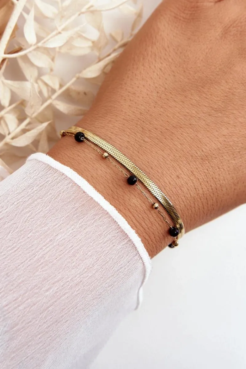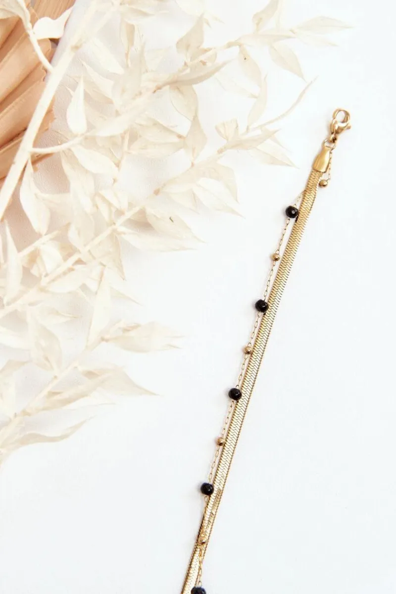 Best Glam Chic Podwójna Bransoletka Żmijka I Ankier Z Koralikami Złota