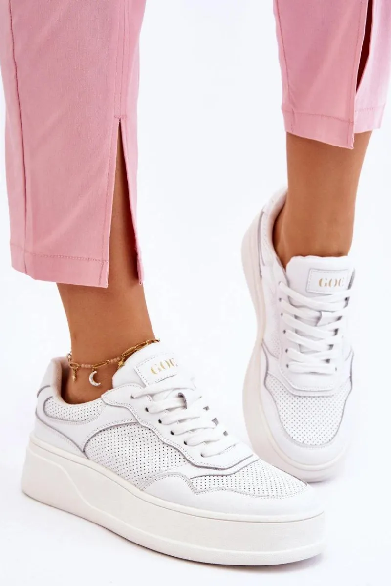 Modne i wygodne buty sportowe marki GOE zostały wykonane z wysokiej jakości skóry naturalnej. Tył cholewki został usztywniony. Miękka, eko skórzana wkładka gwarantuje komfort przez cały dzień. Buty osadzono na platformie z antypoślizgową podeszwą. Klasyczne sznurowanie pozwoli na odpowiednie dopasowanie obuwia do tęgości nogi. Przy wyborze rozmiaru prosimy sugerować się tabelą rozmiarów.