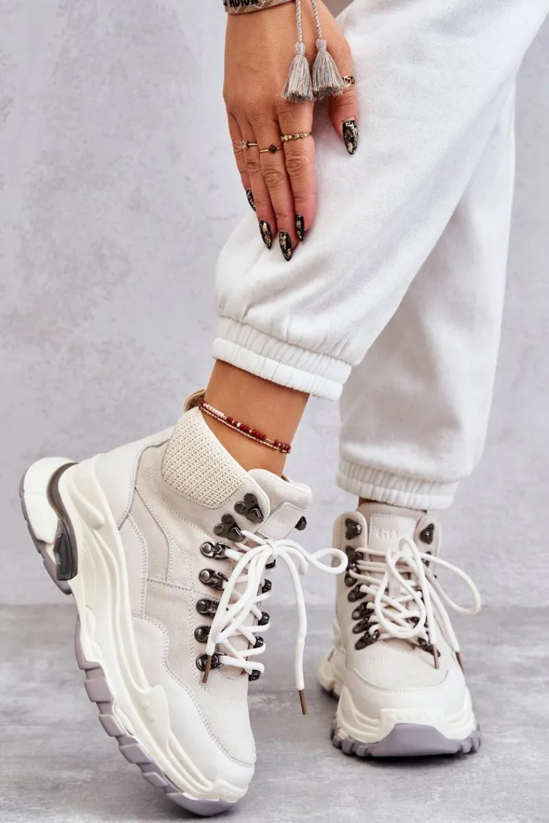 Obuwie sportowe firmy GOE zapewni Ci wygodę i komfort podczas użytkowania. Wykonane z połączenia naturalnego zamszu i naturalnej skóry, a wkładka ze skóry ekologicznej. Model klasycznie sznurowany. Buty te zostały osadzone na masywnej platformie. Wysoka cholewka zapewni stabilizację nogi podczas spacerów czy wycieczek. Ten model powinien znaleźć się właśnie w Twojej szafie! Przy wyborze rozmiaru prosimy sugerować się tabelą rozmiarów.
