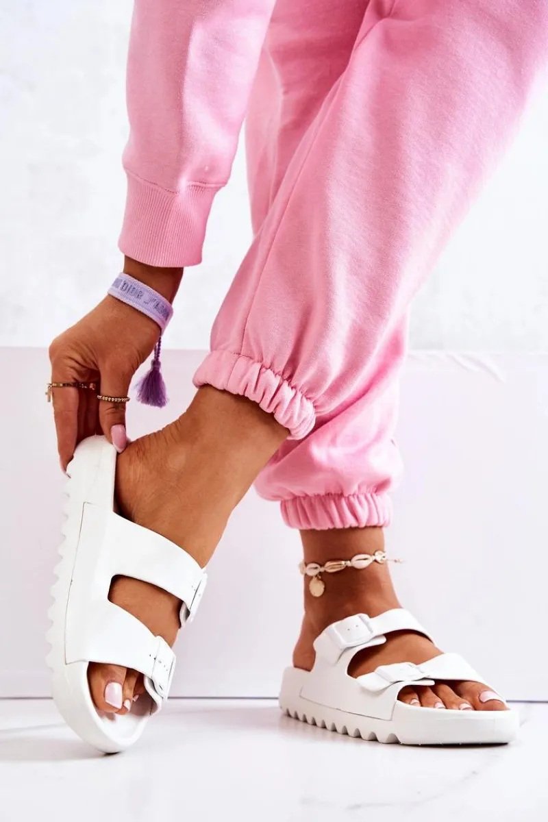 Klapki wykonane zostały z lekkiego gumowego tworzywa. Paski są regulowane, dlatego możesz odpowiednio je dopasować do stopy. Wykonane z eko skóry. Klapki posiadają wygodną, delikatnie profilowaną wkładkę. Świetnie sprawdzą się również jako domowe klapki. Koniecznie sprawdź całą naszą kolekcję klapek damskich! Przy wyborze rozmiaru prosimy sugerować się tabelą rozmiarów.