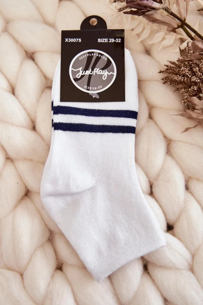 Klasyczne, młodzieżowe skarpetki zostały wykonane w 100% z bawełny. Model za kostkę z dwoma paskami. Ściągacz świetnie dopasuje się do tęgości nogi. Idealne do wielu rodzajów obuwia. Przede wszystkim świetnie będą wyglądać w połączeniu z butami sportowymi czy trampkami. Komfortowe w użytkowaniu. Idealnie sprawdzą się w każdym sezonie!